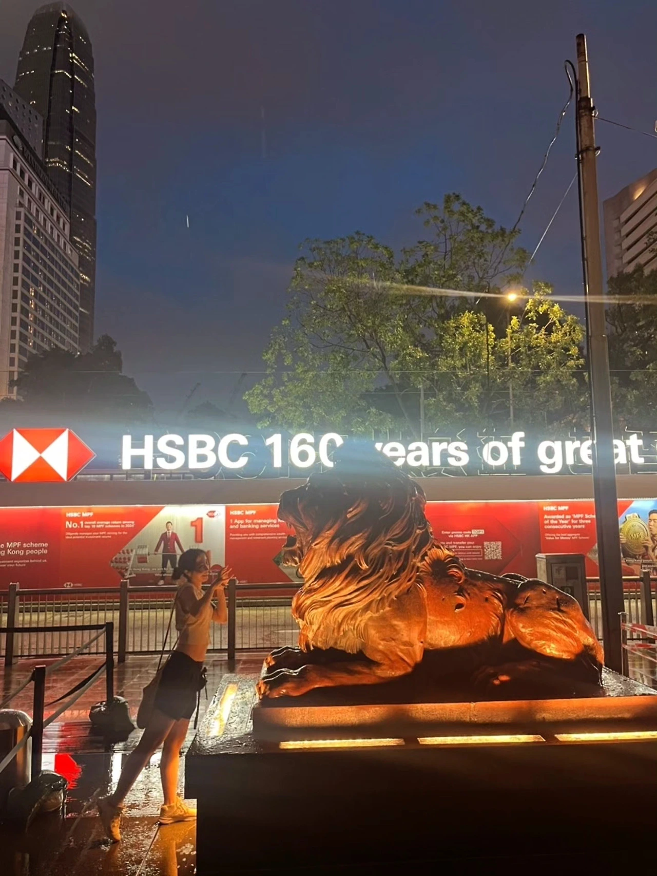 대표 은행 앞에서 사자랑 사진도 남기고,