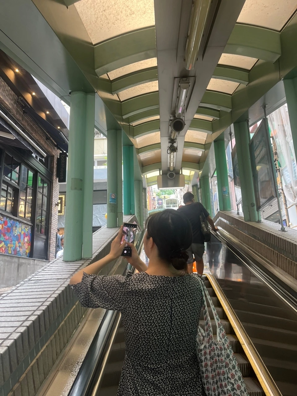 미드-에스컬레이터 근처에서 사진도 찍고,