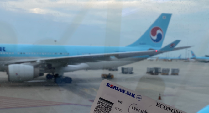 럭키비키인게 비상구 좌석을 카운터에서 배정받았다. 승무원 좌석 옆쪽이라는데 이런 경험은 처음이어서 나름 설렜다.