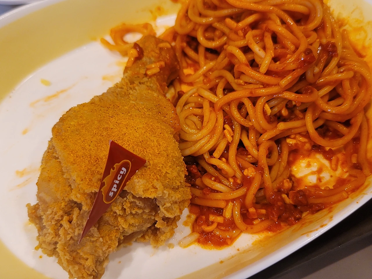 이거 친구가 주문한 매운 닭다리 + 파스타였는데