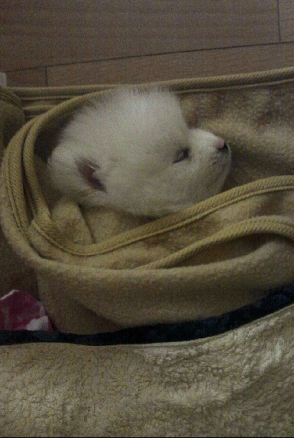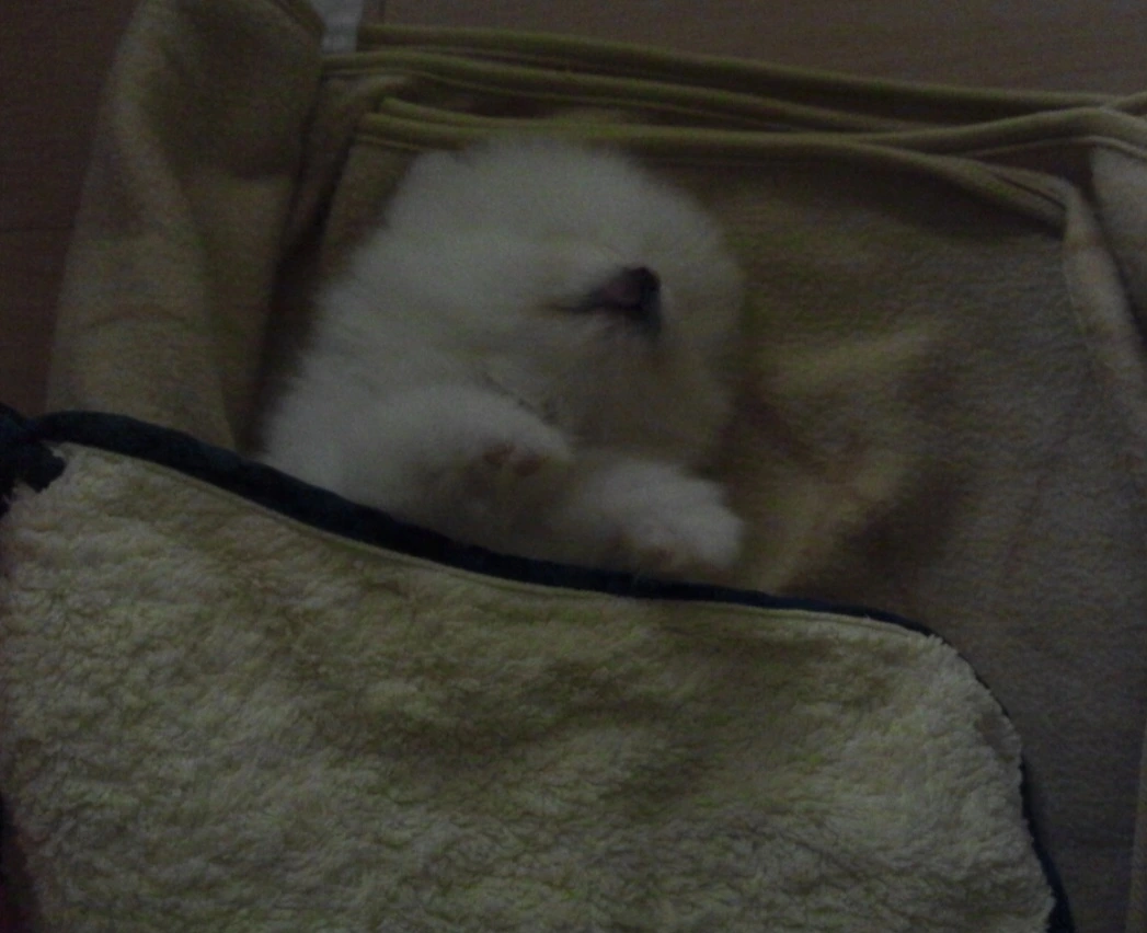 데려온 첫날 아기 강아지가 낯선 환경에 잘 적응할지 걱정되었는데 다행히 너무나 편안하게 잘 자서 우리는 정말 기뻐했다.