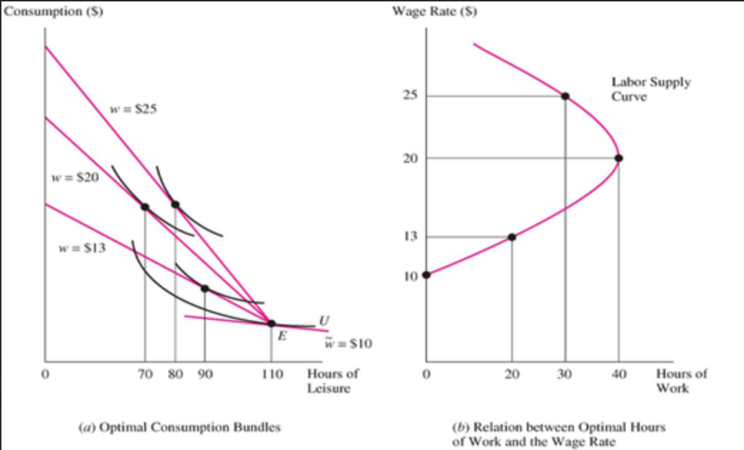 시간당 임금이 높아질수록 노동에 대한 효용은 커진다는 점과