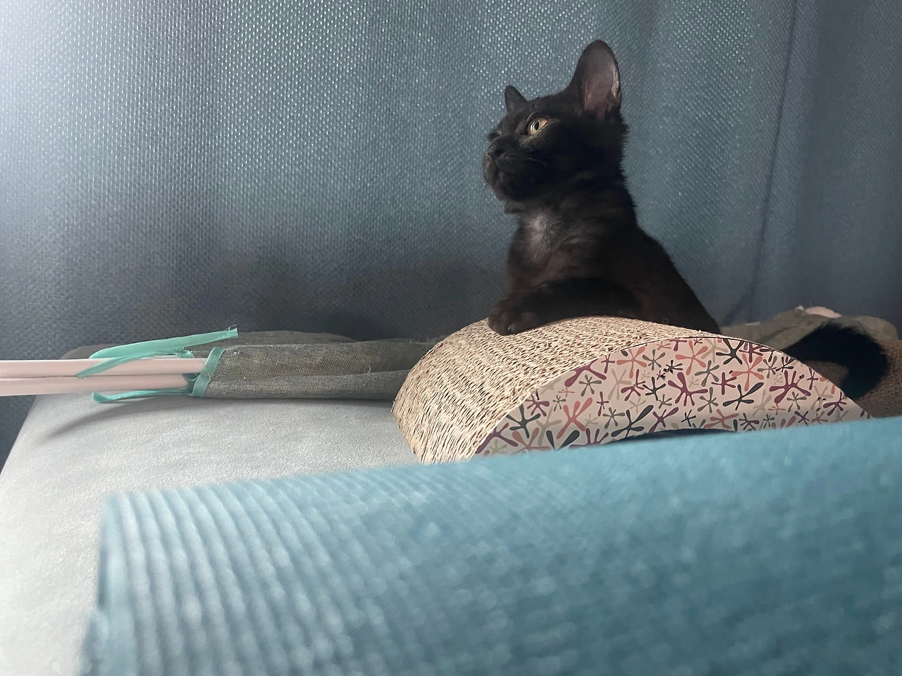 원장님 집에는 이미 애완동물이 포화 상태라 입양할 사람을 물색 중이라고 했다. 나는 상관없는 일이니, 건성으로 듣고 지나쳤다. 며칠 후 발레 수업이 끝나고 가려는데 원장실에 아기가 와 있다고 한다. 아가를 보려고 들어갔는데 안 보였다. “애기가 잘 숨어요. 작아서 찾기도 힘들고. “ 아! 사람 아기라고 생각했는데 아니구나. 여럿이 달려들어 찾았더니 틈새에서 까만 새끼 고양이가 나온다.