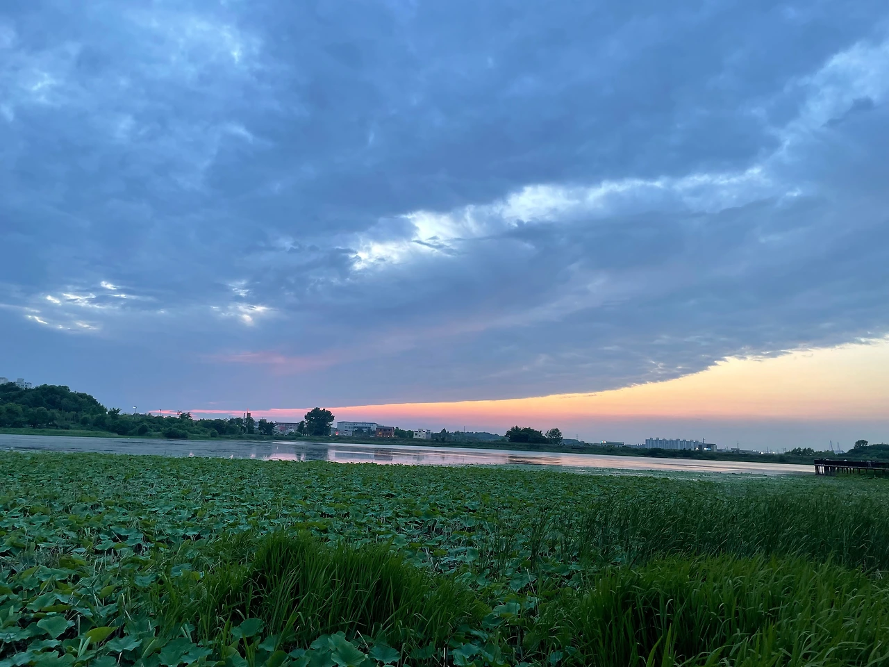저수지 쪽으로 들어서자 기막힌 석양이 펼쳐져 있다. 태풍이 지나간 뒤라 그런지 온도는 평소보다 5도 정도 내려가 덥지 않다. 물 냄새도 끈적임도 없다. 여름치고는 이례적으로 쾌적하고 맑다. 사진을 찍으려고 폰을 꺼냈다. 배터리가 다 되었다. 저건 무조건 찍어서 남겨야 하는 그림인데 어떻게 하지? 지나가는 사람에게 말을 걸어서 폰을 빌린 후 그 폰으로 사진을 찍어 나에게 전송하는 방법이 있다. 일전에 유모차에 아이를 태우고 산책하는 여자분과 아이의 모습이 내 사진에 찍힌 적이 있다. 지우려다 문득 나라면 소장하고 싶은 사진이다 싶어서 앞으로 다가가 사진을 보여주고 동의를 얻은 후 그 자리에서 전송해 주었다.