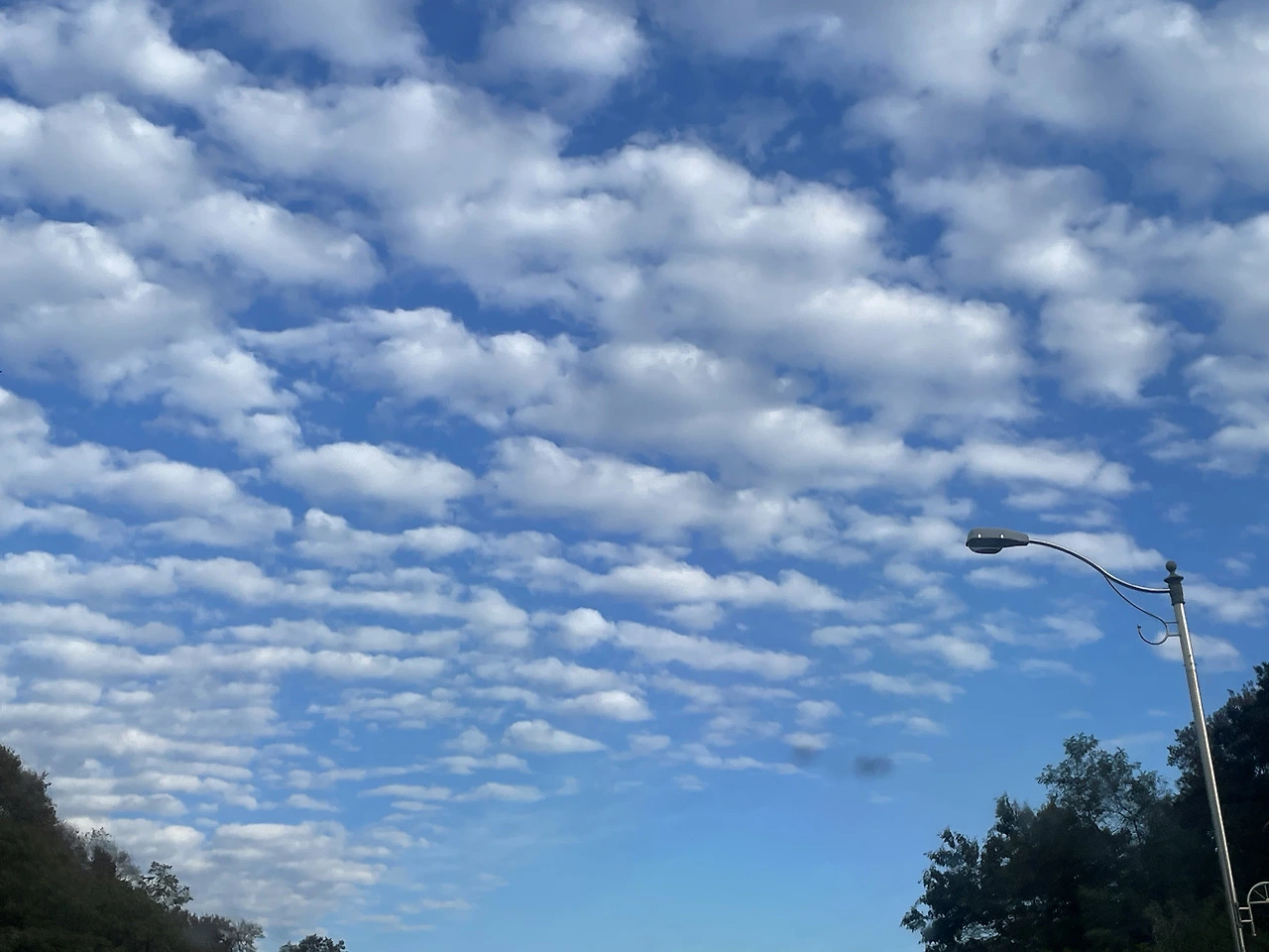 달려가는 하늘에 몽실몽실 양떼구름이다.