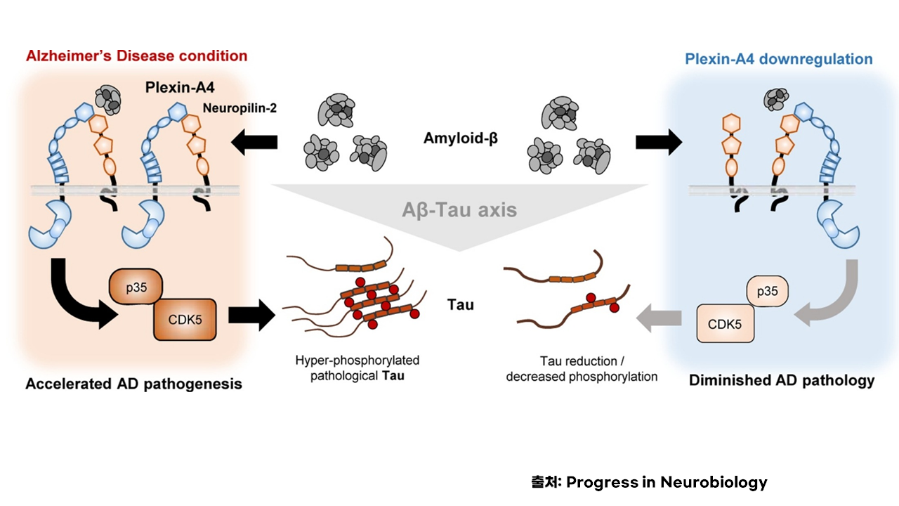 1. Plexin-A4 mediates amyloid-β–induced tau pathology in Alzheimer’s disease animal model. Author links open overlay panelSunwoo Chung a b 1, Jinhee Yang a c 1 2, Haeng Jun Kim a b, Eun Mi Hwang d, Wonik Lee a b, Kyujin Suh a b, Hayoung Choi a b, Inhee Mook-Jung a b.