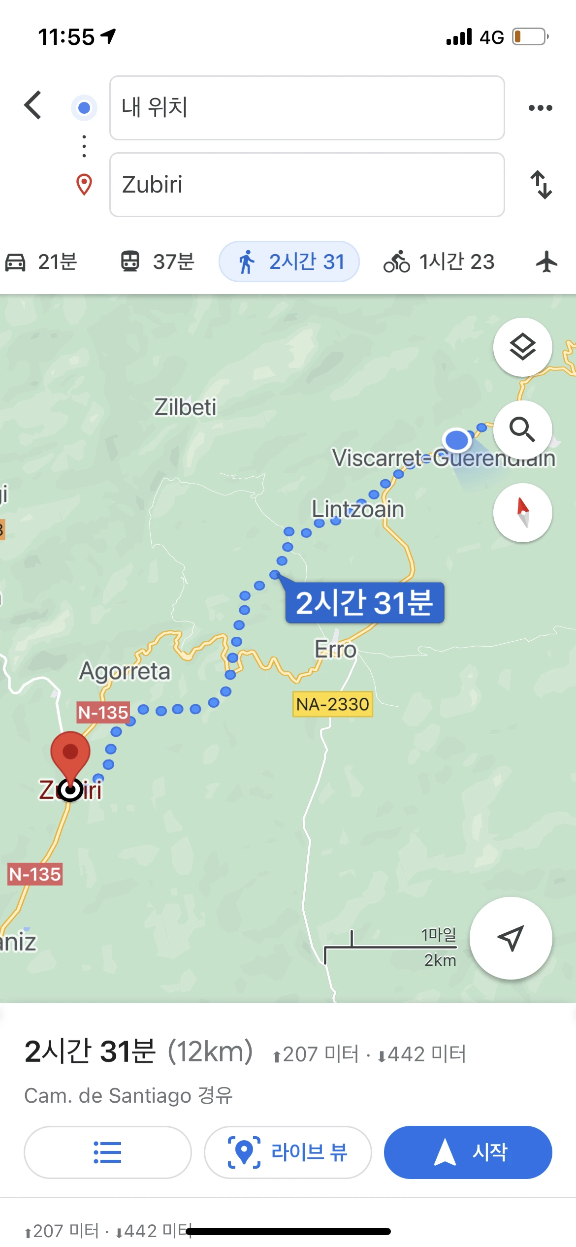 Bar가 있던 곳은 Viscarret Guerendain이라는 곳. 그리고 약 2시간이 지나서 Erro라는 곳을 지나게 되었다.