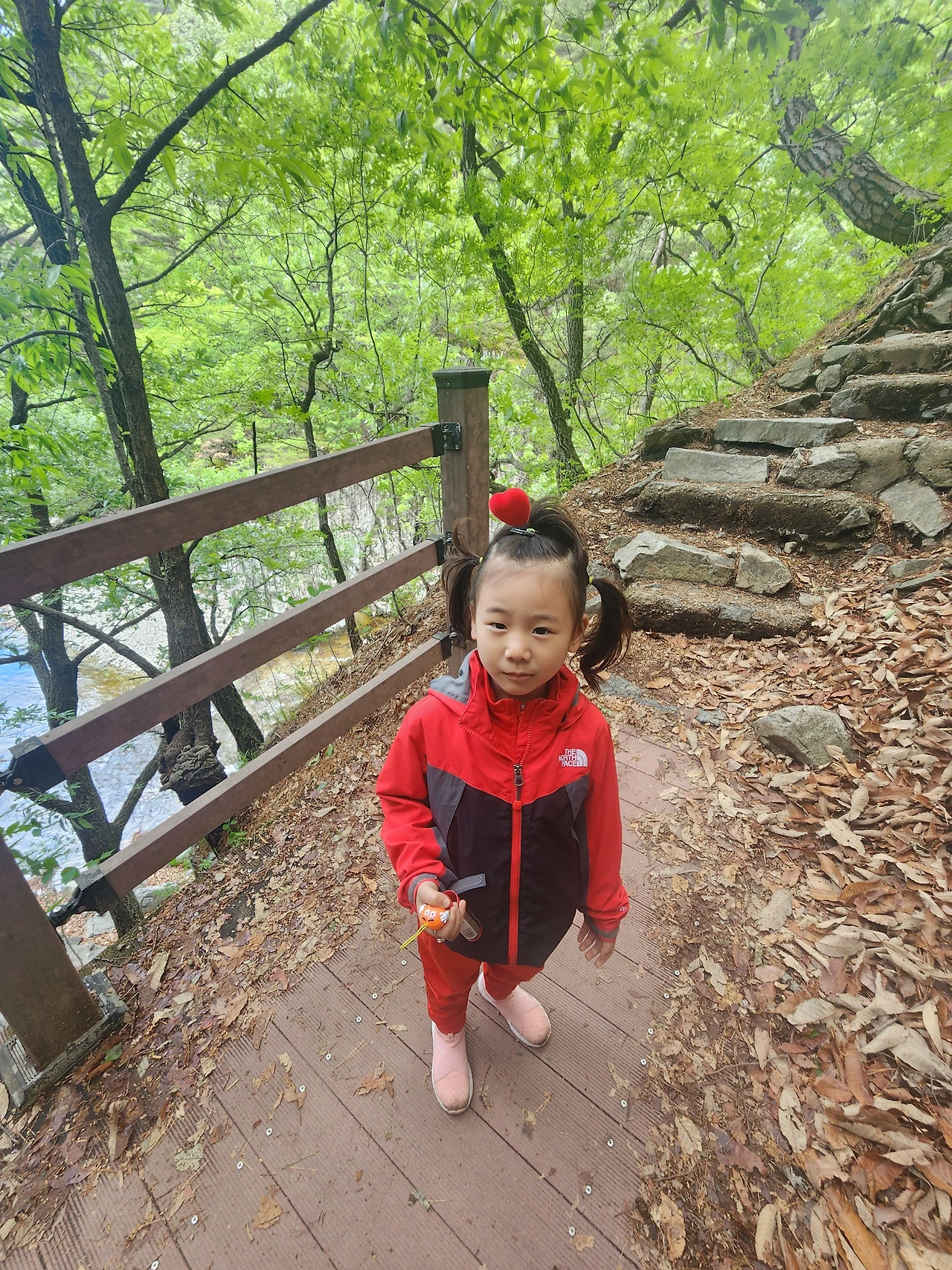 엄마와 함께 온 등산이 즐거운지 입이 귀에 걸려버렸다.