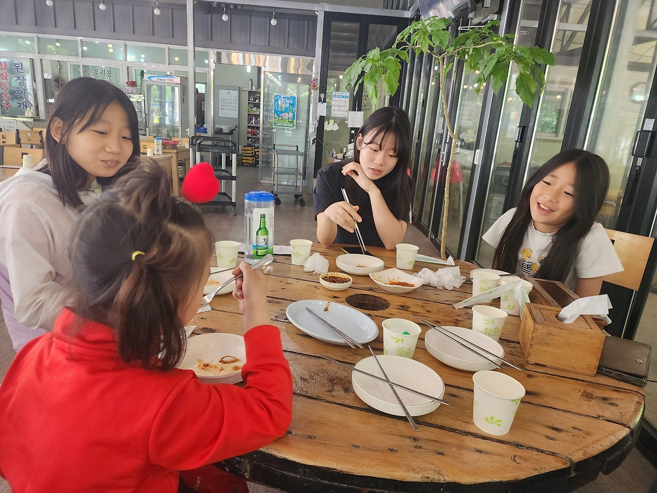 아이들은 허기가 지는지 배고프다 하였다. 지인과 칼국수집을 들어갔다. 인심 좋은 사장님은 우리 아이들이 많아서일까? 서비스인 손두부와 뻥튀기를 주었다. 그리고 칼국수는 어찌나 맛이 좋은지.