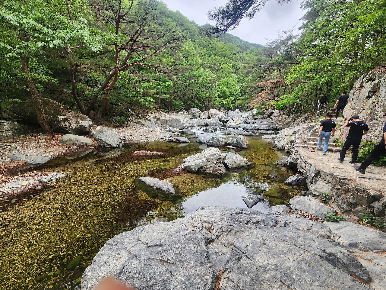 빠져버릴 듯 한 구멍 안에 계곡물이 흐르는 광경이 보인다. 두 번째 오르는 산행이긴 하나, 보지 못했던 구석구석 놓치기 싫어진다.