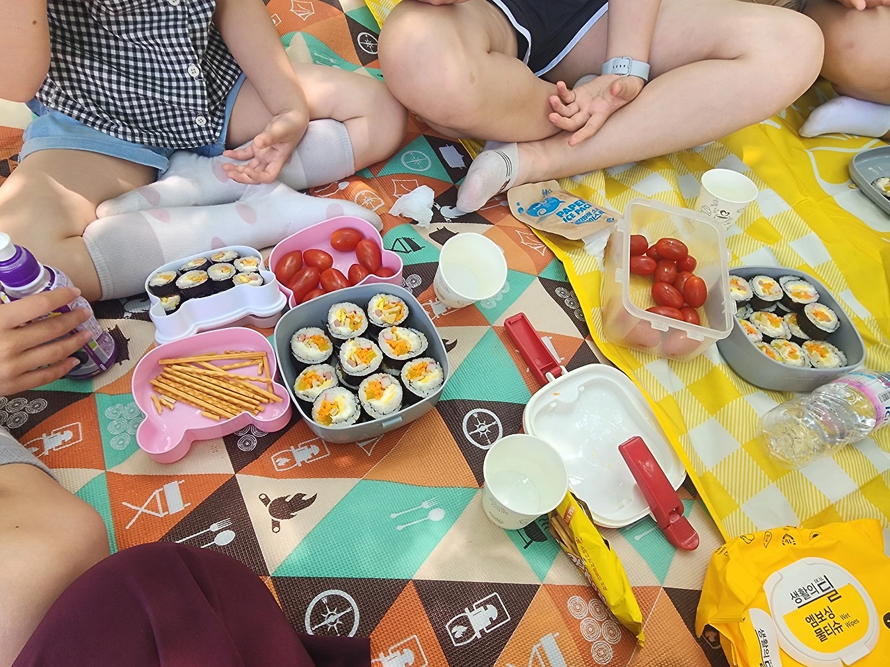 주말 동안 뒤숭숭한 마음을 뒤로한 채, 아이들과 나들이를 위해 아침부터 나는 도시락을 준비했다. 꼬맹이가 큰 김밥을 먹을 때마다 쪼그마한 입이 찢어질까 안절부절못한 내 마음에 꼬마김밥도 싸버렸다. 그리고 공휴일인데도 아침부터 출근하는 신랑을 위한 사랑의 도시락, 여우들과 먹을 점심도시락. 간식도 챙기고 필수인 얼음물과 음료. 사 먹으면 다 돈낭비라는 백조엄마의 알뜰살뜰.