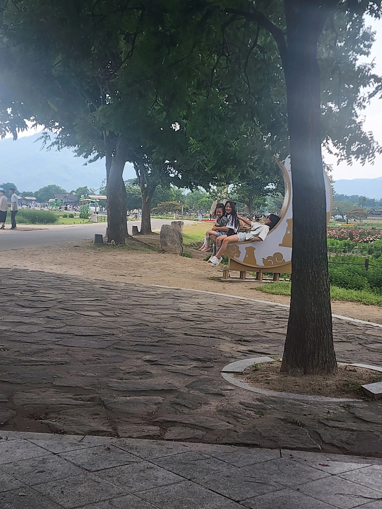 막내의 요청덕에 나는 손을 잡고 부랴부랴 첨성대 쪽으로 먼저 내려와 문제를 해결해 준 뒤, 지인과 아이들 있는곳으로 합석했다.