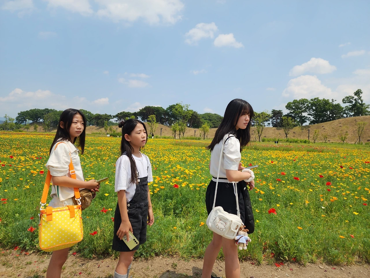 날씨가 더워지기 시작한다. 땀이 나기 시작 하지만, 아직까진 눈으로 보는 배경이 좋아 버틸만하다. 양귀비 꽃밭에서 아이들이 마음껏 사진을 찍고 있다. 가족끼리 와서 여기저기서 '찰칵찰칵', 자전거 페달을 밟으며 슈우 우웅~~~ 하는 모습. 그리고 배경음악까지 멋진 풍경이 눈앞에 펼쳐졌다.