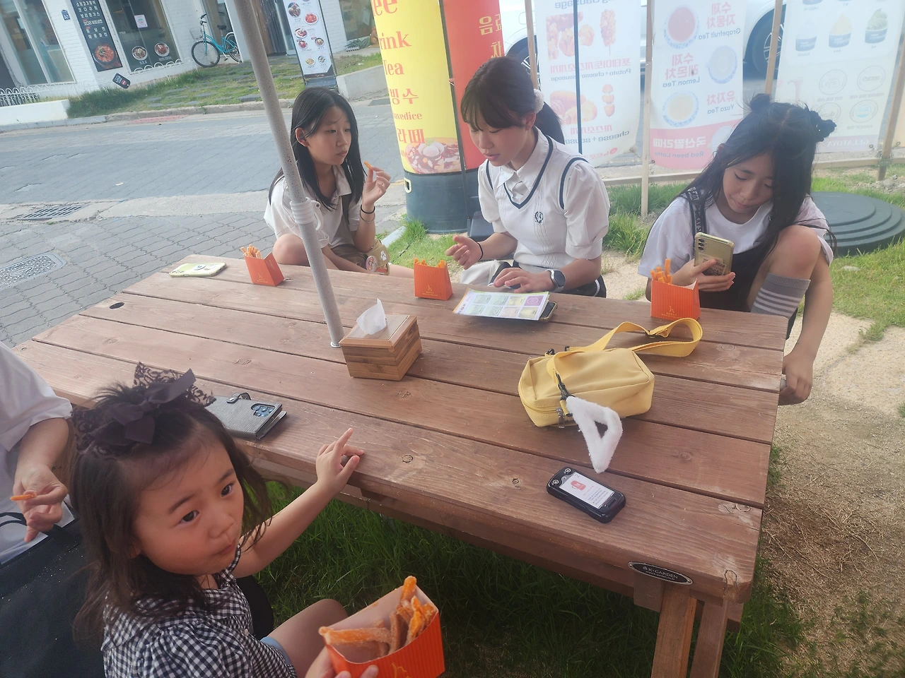 첫째가 쫀드기가 유명하다는 말에 지인이 아이들에게 사주었다. 나는 고마움에 옆집 아이스아메리카노 두 잔을 사며 잠시 벤치에 앉아 아이들과 얘기를 나누며 경주나들이의 끝을 맺었다.