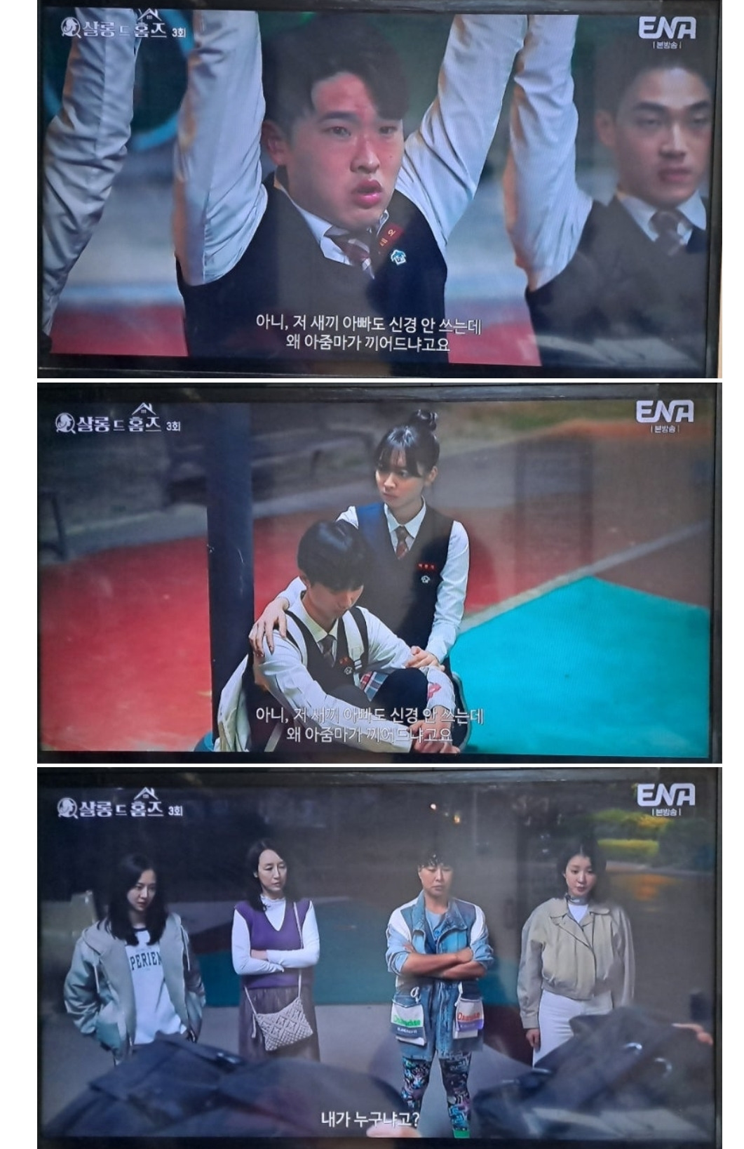 어른들은 아이들 행동이 잘못됐다고 생각하면, 그냥 지나치거나 조용히 모르는척한다. 드라마에서 보던 장면들은 내 아이가 청소년이 되니 아이에게 듣던 말들이 스쳐 지나가며 장면들 하나하나가 현실과 더욱 공감하게 된다.
