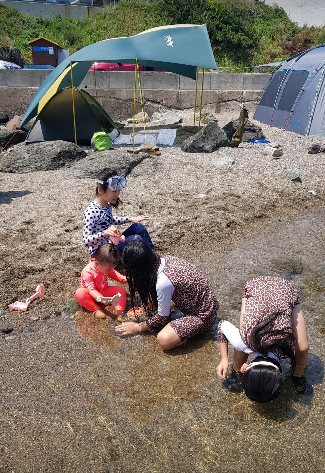 언니들 없이 급하게 준비한 물놀이는 어린아이에게 빠질 수 없는 물 놀이터였다.