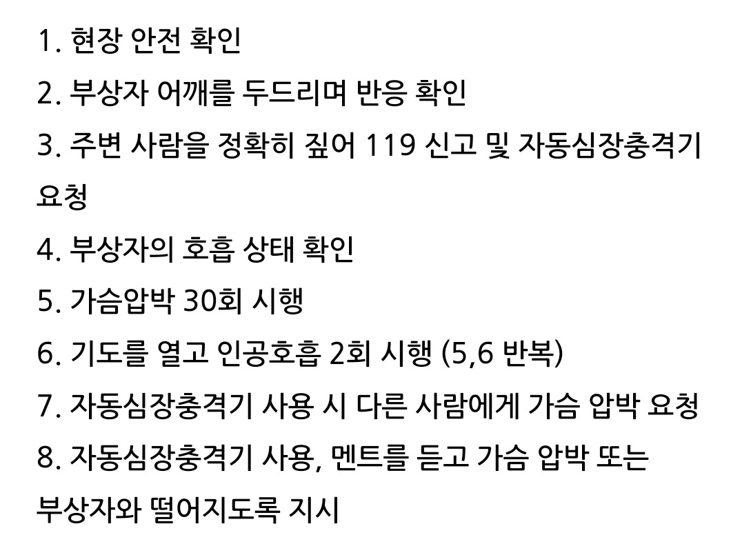실습하며 배워보니 쉽진 않았다. 하지만 골든타임에 생명을 살릴 수 있다는 생각에 집중했다. 나의 가족이 이런 일로 쓰러지면 당황스럽지만, 한 번은 해야 될 일이다.
