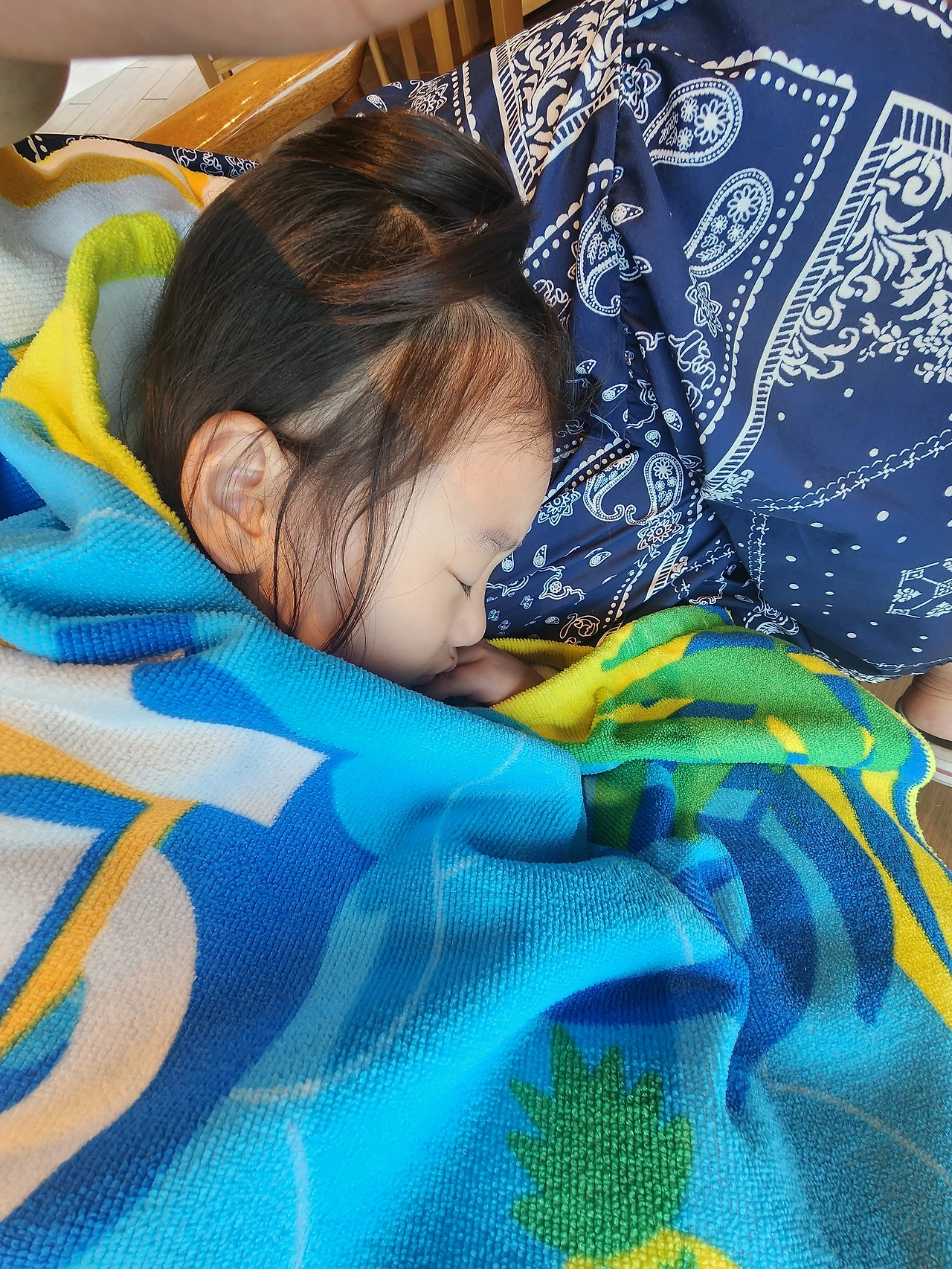 지인아들과 한참을 놀고 난 후, 카페에 앉아 수다를 떠는데 피곤했는지 어느새 잠들어버렸다.