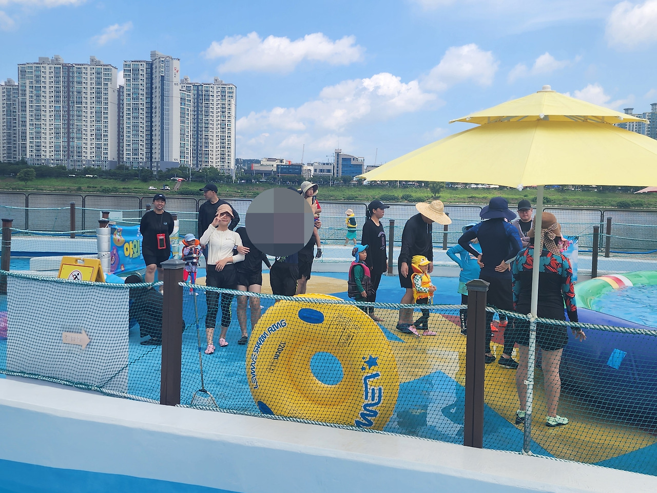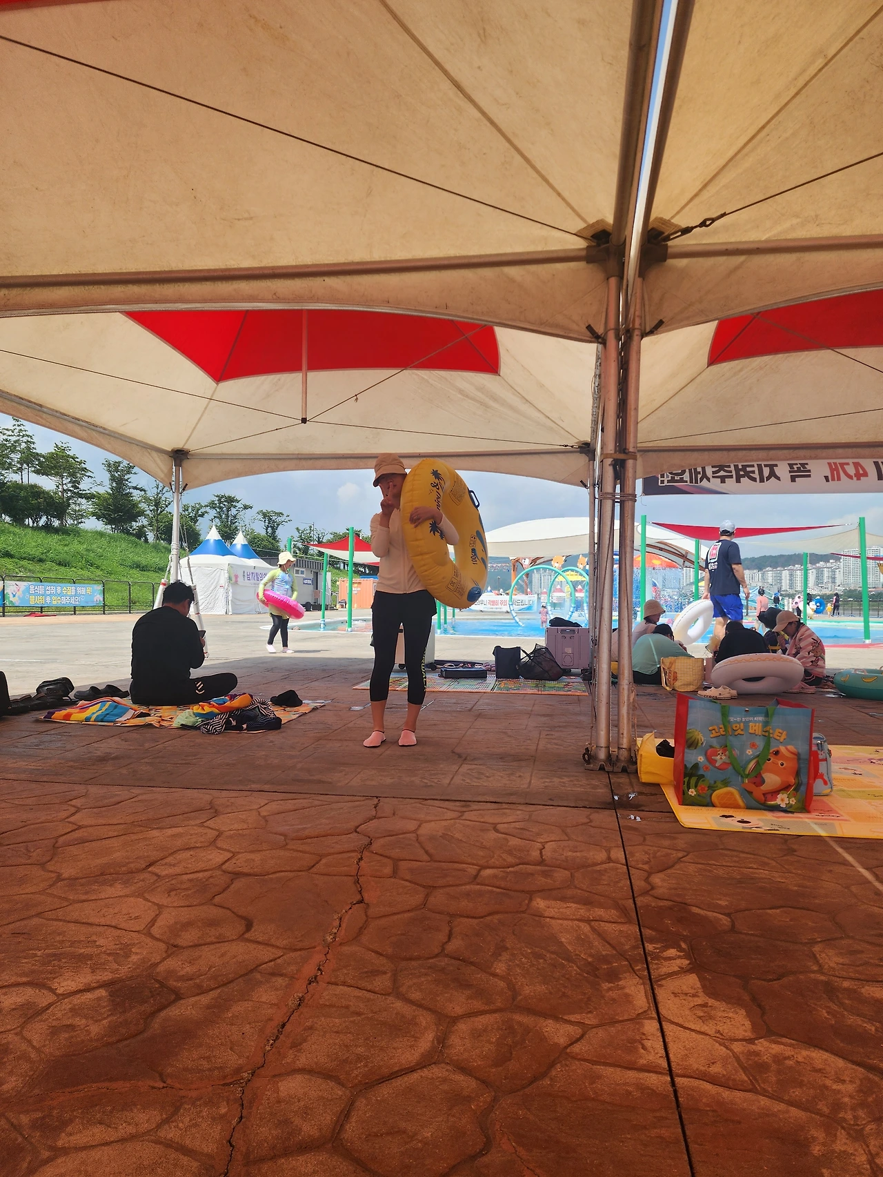 어린아이도 아닌데 신이 나서 웃는 첫째. 아직 나에겐 아기다. 해맑은 모습에 내 마음도 활짝 꽃이 피었다. 돗자리를 피며 튜브를 불어 주니 친구 찾아 두리번두리번.