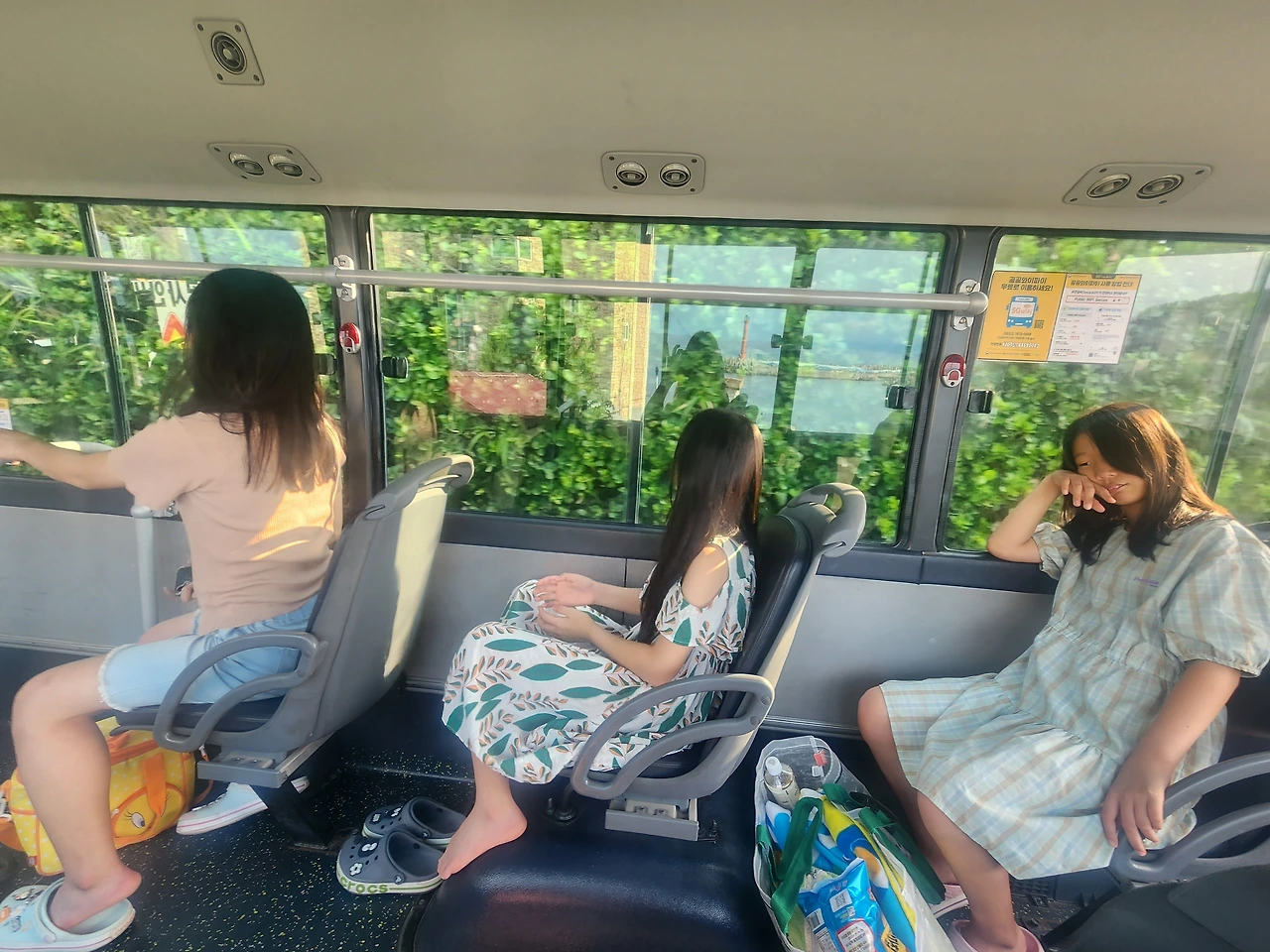 택시 부르자고 할 만도 한데 내색 없이 잘 따라오는 아이들. 버스가 도착하자 탑승.