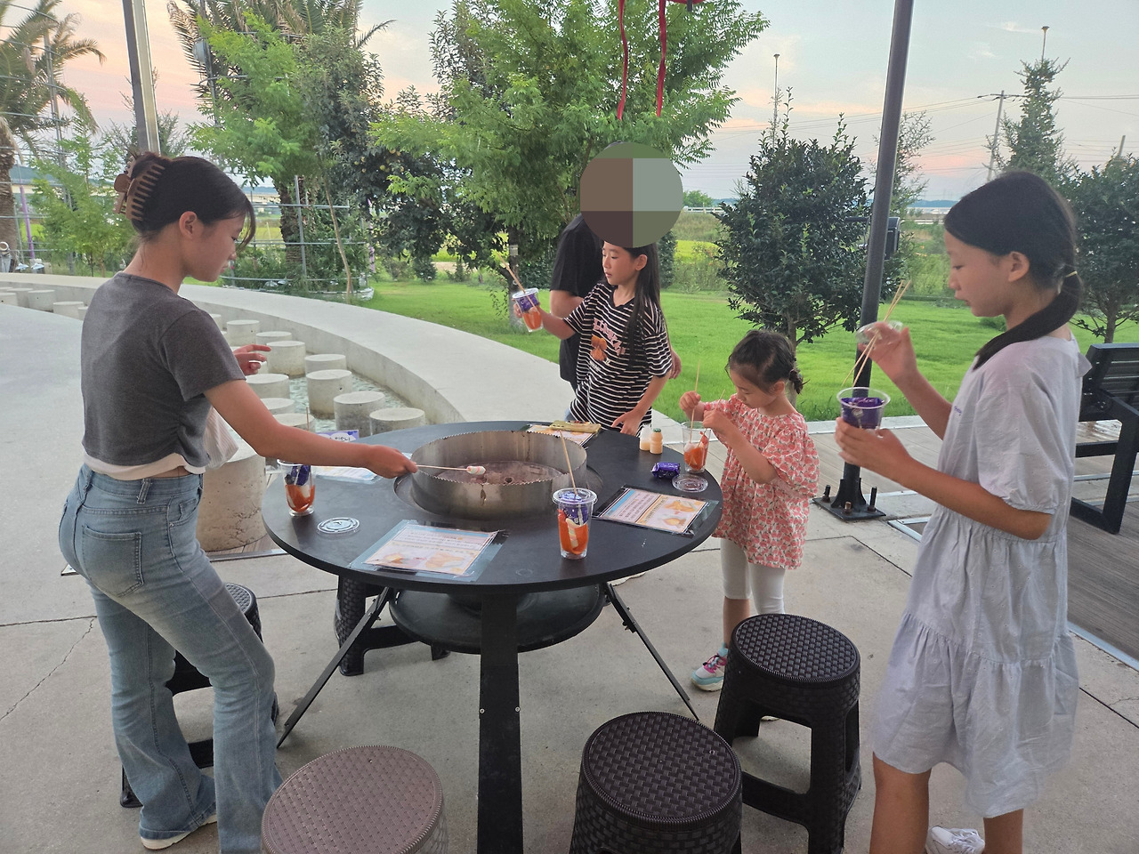 식사 후, 밖으로 나오니 마시멜로가 있었다. 한통씩 주며 꼬치에 꼽아 숯에 구워 먹는, 재미가 쏠쏠한가 보다. 말랑말랑 쫀득쪽득. 입안에 들어가면 사 아악 녹는 맛. 아이들은 푹 빠져 한참을 구워 먹었다. 그리고 잠시 둘러보며 야경을 감상했다.