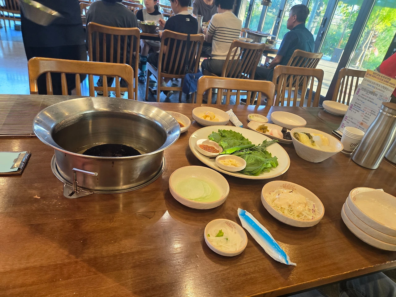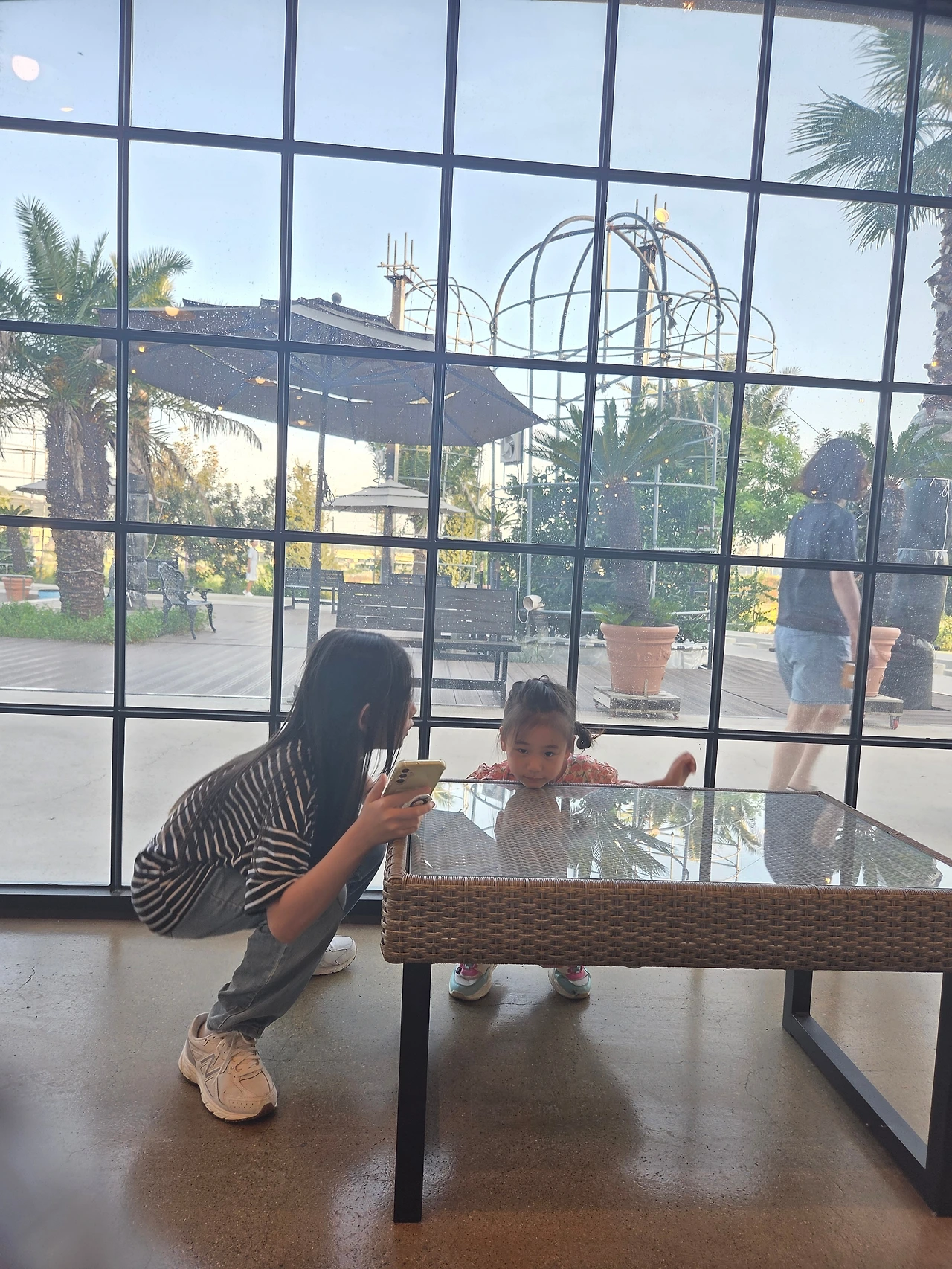 아이들과 신랑이 기다리는 나의 보물창고인 집으로 가는 길이 오늘따라 그 길이 더 정겹다. 집으로 오니, 막내가 나를 바둑이처럼 반갑게 맞이해 준다. 점심준비를 한 뒤, 각자의 시간. 그리고 막내는 껌딱지처럼 찰싹 붙어있다. 일 끝나고 집에 오니 마음이 편안해서인지 스르르르 눈이 감기더니 잠들어버렸다. 피곤함을 알듯 나를 깨우지 않고 다들 각자시간을 보내면서 후다닥 지나가버린 시간. 주말에 밥 한번 먹자던 시누이네와 함께 저녁약속을 잡았다. 아이들은 고모가 좋은지, 내가 잠든 사이 눈 빠지게 기다리기도 했다. 저녁시간이 되자 우리는 식당으로 향했다. 큰 건물에 마치 힐링할 수 있는 곳곳으로 만들어진 식당. 아이들은 한라봉이 달려있는 나무와 야자수나무를 한참 뚫어져라 쳐다보았다. 대기시간이 있어 잠시 사진을 찍으며 둘러보고 있었다. 식구가 많아 식당을 자주 못 갔던 탓에 오늘따라 아이들은 신이 났다.