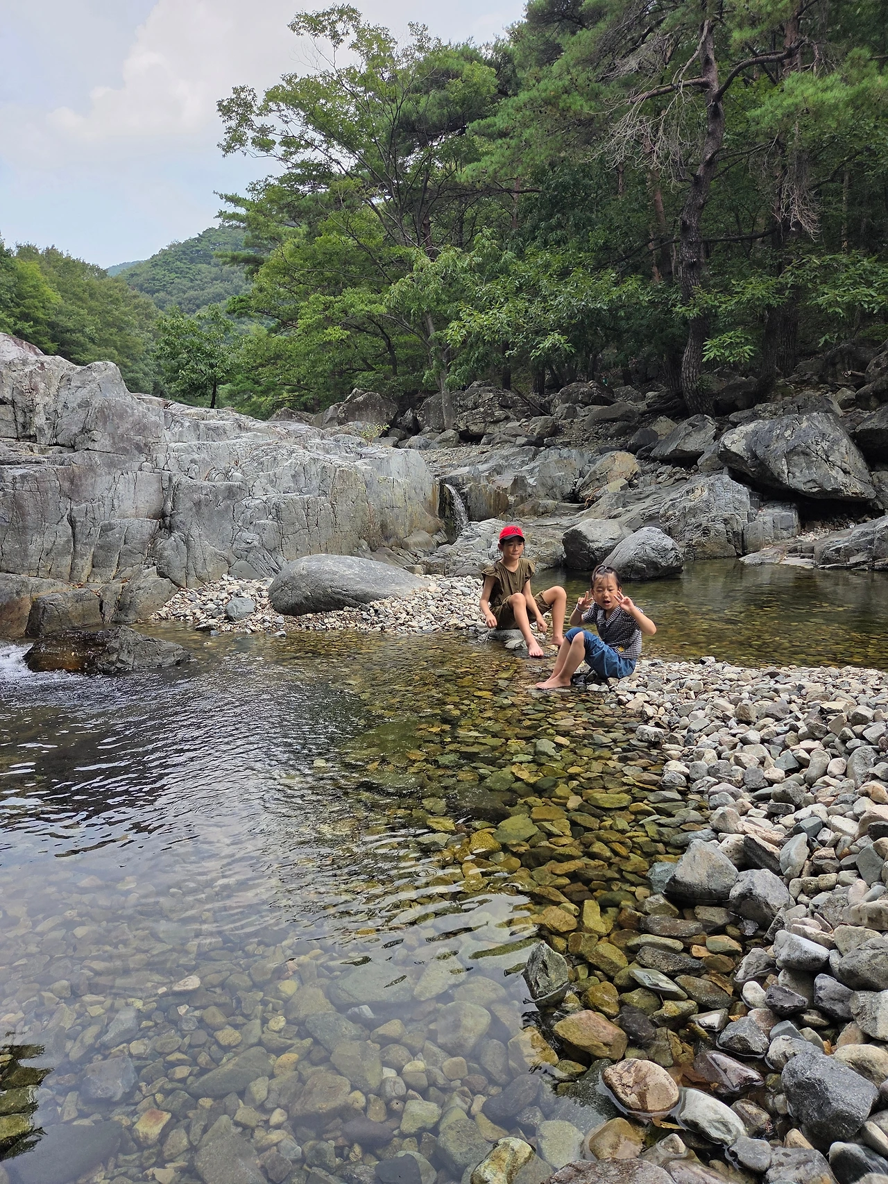 어느 정도 지났을까? 계곡에 발을 담그고 있는 아이들과 어른. 우리는 잠시 발걸음을 멈추고 눈으로 계곡을 감상하기 시작했다. 막내가 물었다.