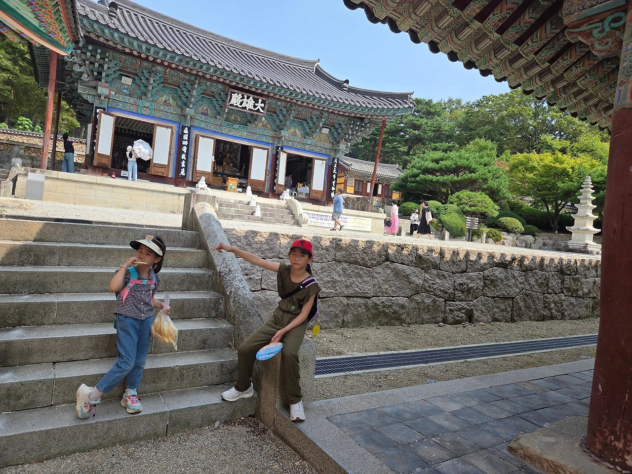 하차 후 편의점에서 음료수와 간식을 챙기고 올라가기 시작했다. 뻥튀기가 보여서 한 봉 지사서 먹으며 올라갔다. 여름의 끝자락이지만 산바람이 불어 나만 괜찮은 듯했다. 아이들은 벌써부터 덥다며 헥헥 거리기 시작했지만, 3호는 의젓하게 걸어갔다. 보경사가 눈앞에 보였고 나는 항상 마음에 걸렸던걸 해결하러 상점에 들렸다. 미신이긴 하지만 내손과 팔에 착용한 행운을 불러준다는 팔찌 그리고 코끼리반지. 혼자만 착용해서 늘 마음에 걸렸다. 오늘은 우리 가족에게 행운과 복을 빌어달라는 마음으로 하나씩 구입했다. 막내가 고른 팔찌. 마음에 들었는지 얼른 등산하자며 신이 났다. 상점을 나와 잠시 사찰을 둘러보고 그리고 드디어 등산 시작했다.