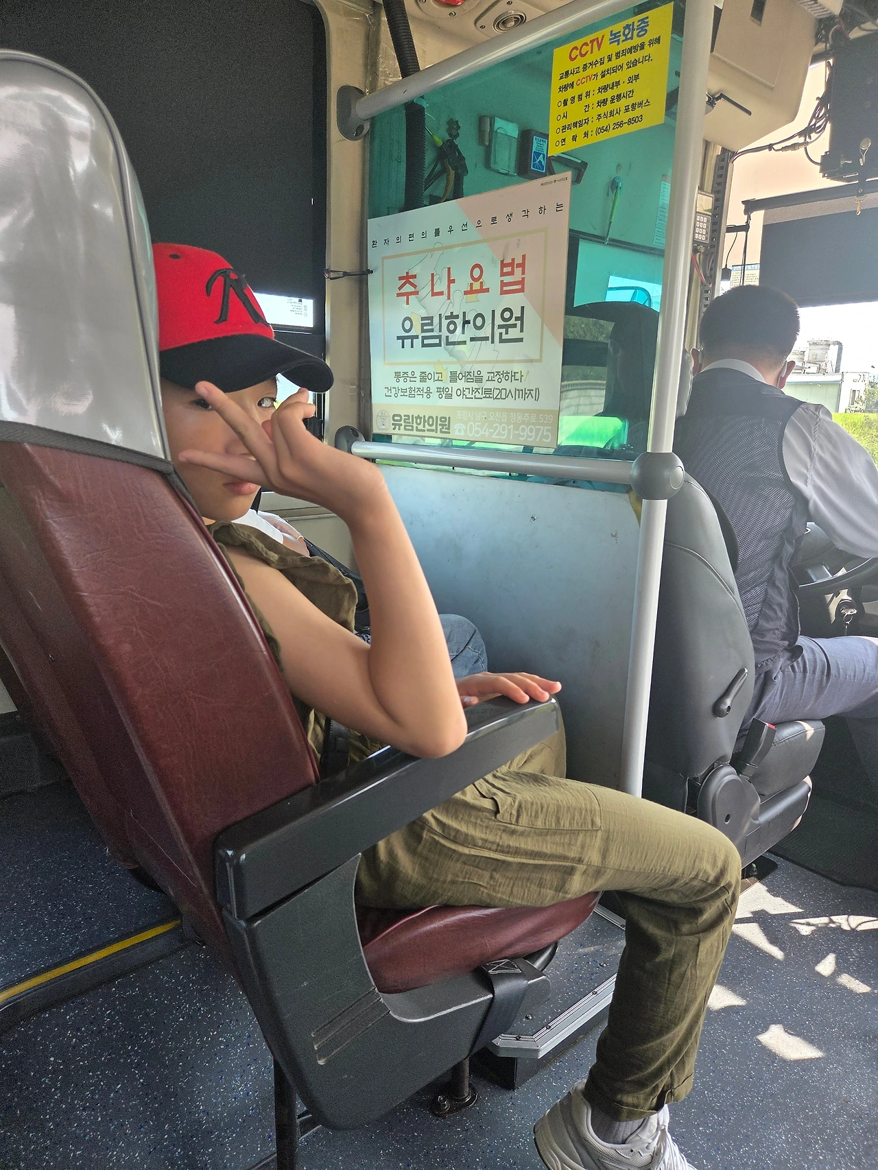 아이들이 힘이 들까 할머니들과 할아버지는 이리 오렴 하며 손짓으로 양보해 주셨다. 한참을 지나고 탑승객들이 내리고 자리가 비어서 편히 갈 수 있었다. 버스의 반은 내연산으로 가는 승객들.
