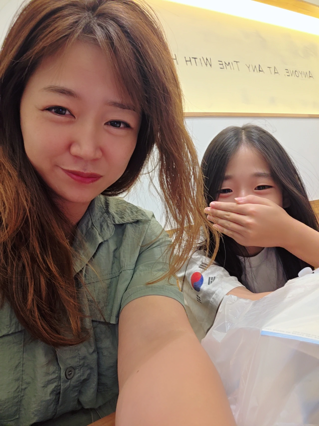 집에 있을 막내와 신랑이 눈에 아른거려 카페에서 음료를 주문했다. 음료가 나오기 전 아이들과 잠시나마 셀카놀이를 했고 눈 빠지게 기다리고 있을 막내를 위해 또다시 후다닥 집으로 향했다.