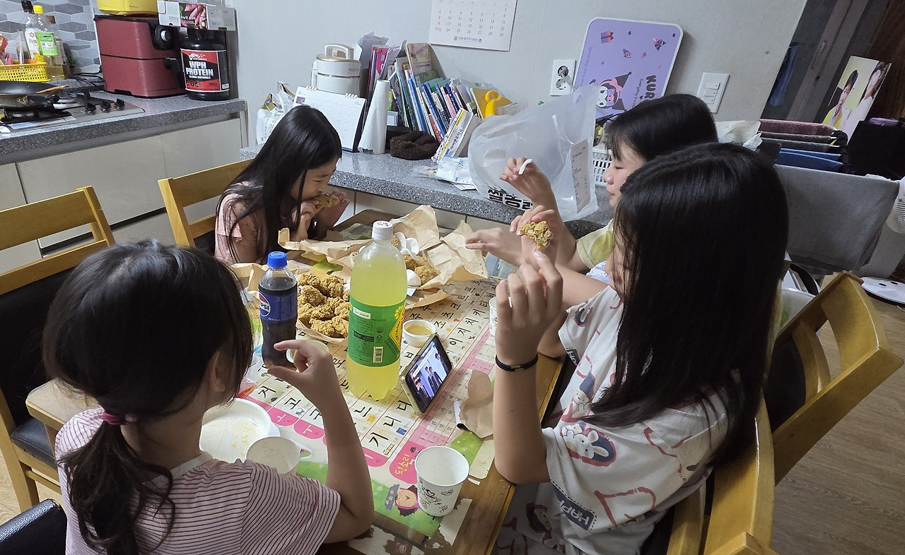 '얘들아, 치킨 시켜줄게 도와줘서 고맙고 곁에 있어줘서 고마워. 사랑해'