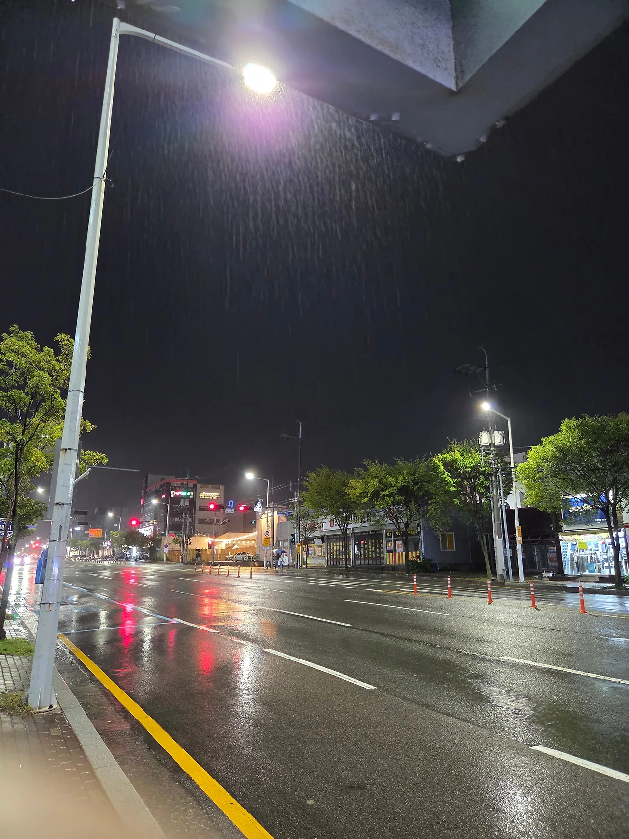 정류장에서 버스를 기다리며 하늘을 바라보았다. 도로를 비취는 네온사인 불빛들. 그리고 정류장 모서리 끝에서 똑똑똑 떨어지는 빗방울소리. 정류장 처마경계에서 가로등사이로 주르륵주르륵 내리는 장댓비. 혼자만의 시간이 오늘따라 황홀하다.