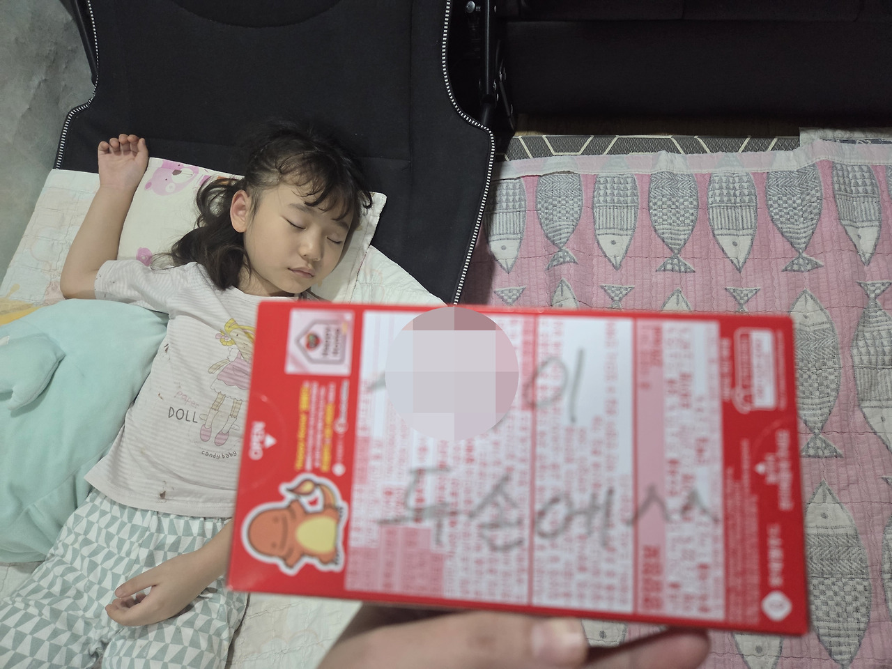 "오~4호는 자는데? 내 것도 있네? 어제오늘 잊어줄게. 얘들아 아프지 말자"