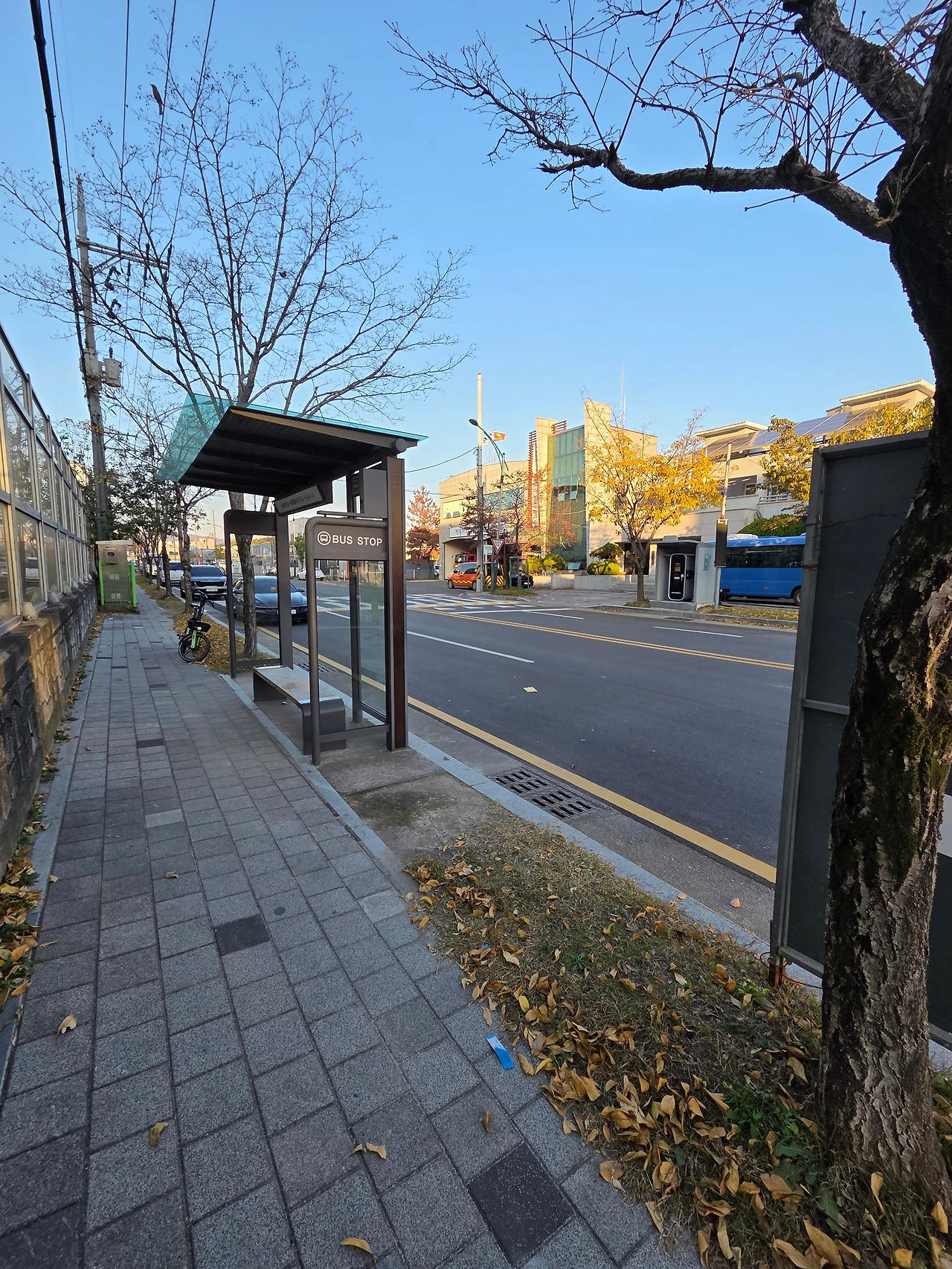 파아란 하늘아래. 새소리를 들으며 버스정류장에서 나의 아쉬움을 달래본다.