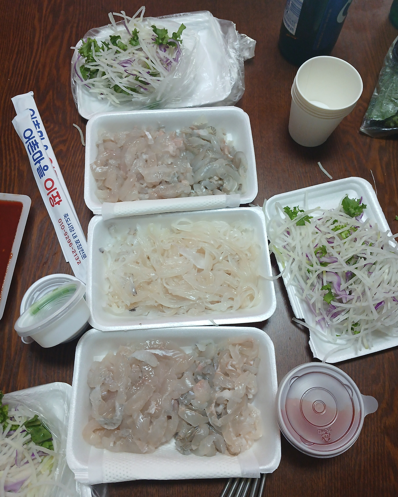 다음날 신랑이 출근하고 오늘의 계획을 세웠다. 엄마가 가져온 닭으로 나는 간장찜닭을 하기 시작했다. 어제오늘 음식솜씨는 없지만 맛있게 먹는 모습에 나는 기분이 더 좋았다. 그리고 아빠가 좋아하는 회를 사러 죽도시장에 들러 즐거운 시간을 보낸 뒤, 집으로 다시 돌아와 음식을 먹으며 마무리를 했다. 막내에게 내가 지금까지 궁금했던 것과 앞으로의 계획을 들어보았다. 남매의 서먹한 대화 그리고 사춘기의 막판. 그건 지금까지의 열정을 쏟아붓기 위해 예민했던 과정이었다는 생각이 오늘 이 자리에서 남동생과의 대화로 느낄 수 있었다. 자기의 계획을 스스로 세워둔 남동생얘기를 들으며 다시 한번 놀라움을 감출 수 없었다. 철이 없던 나와 전혀 다르게 성장하는 남동생. 우리 부모님의 어깨는 한결 가벼워 보였고 얼굴에는 미소가 넘쳐흘렀다.