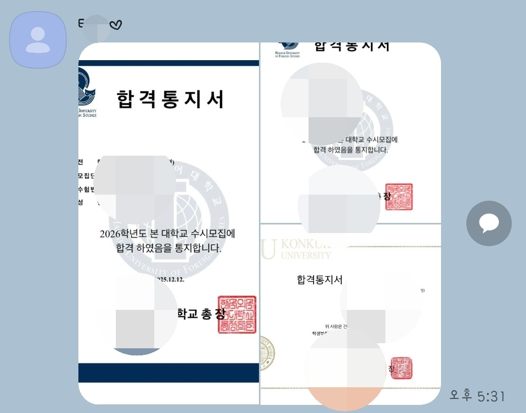 한주가 무섭게 지나갈 때쯤 카톡이 왔다. 수능을 끝난 막내동생이 수시면접을 본다며 서울로 왔다 갔다 하더니 소식을 전해왔다.