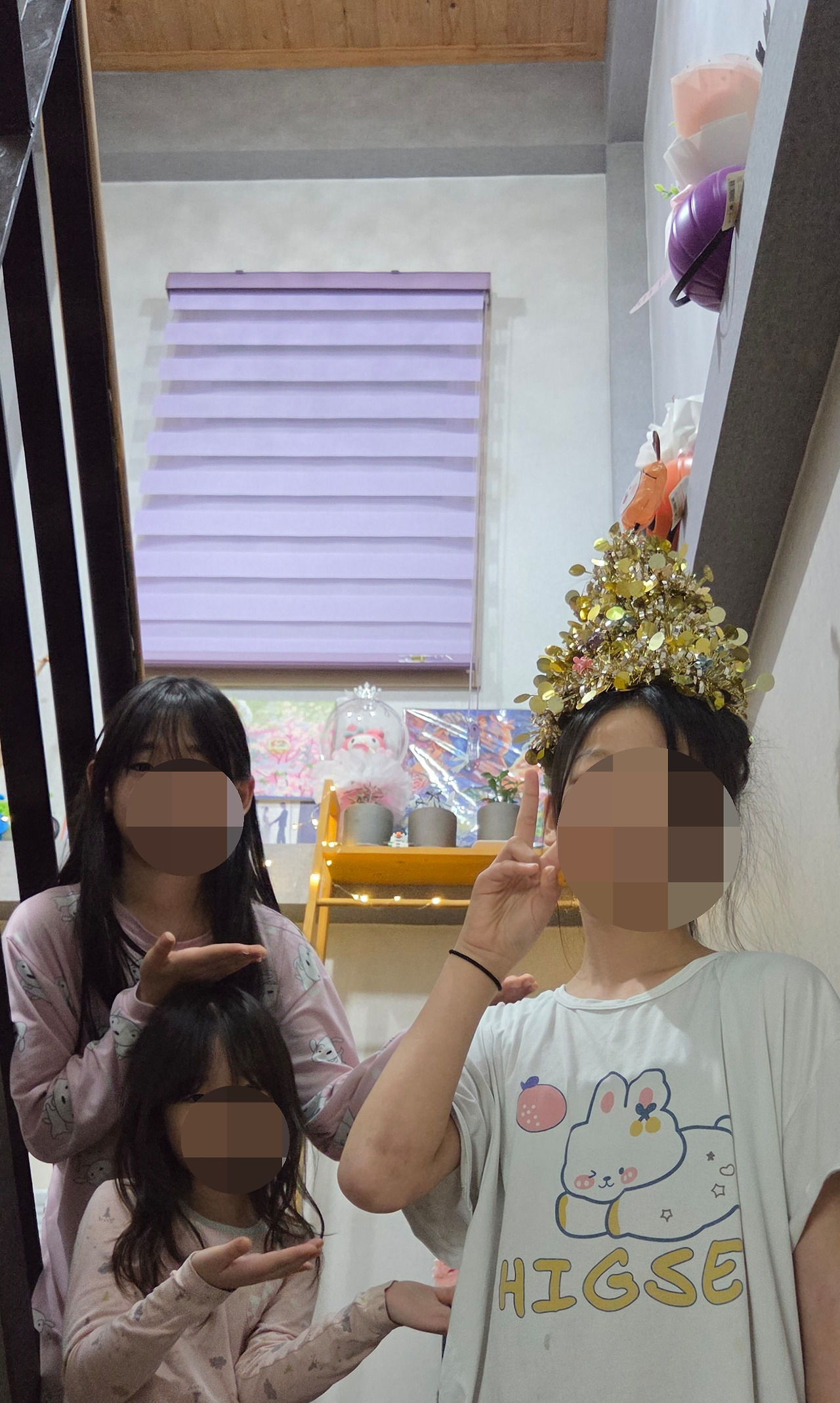 집으로 들어와 유자민트를 먹으며 아이 들노는 모습을 보고 있는데, 2호, 3호, 4호 갑자기 인간트리를 만드는 게 유행이라며 나에게 부탁을 했다. 트리에 있는 장식을 후루룩 하더니, 서프라이즈를 보여주었다.