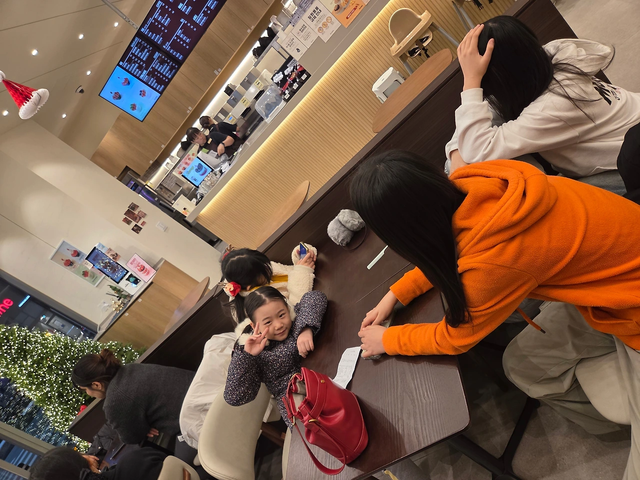크리스마스이브날이라, 모든 거리가 북적북적했다. 카페에 앉아 주문을 기다리는데 막내와 아이들이 지쳤다. 그래서 나는 집으로 포장해 가기로 했다. 신랑을 만나 집으로 가는데 막내가 물었다.