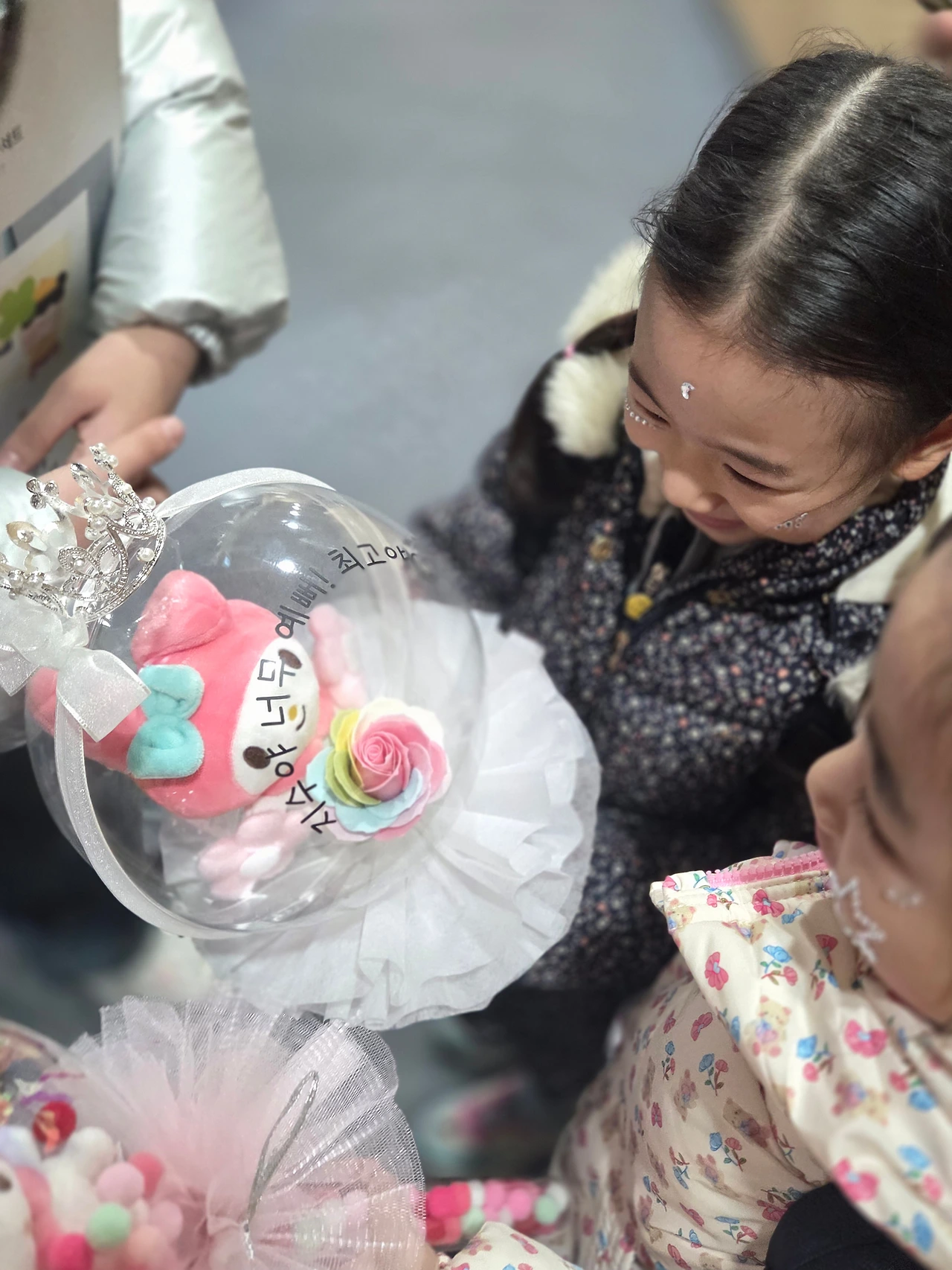 반나절 근무의 끝으로 내 마음이 설레어 버린다. 버스를 기다리며 집으로 가는 길. 다행히 비가 그치고 날씨도 추워지지 않았다. 한 명씩 한 명씩 집으로 하원하며, 막내의 공연장으로 출발하였다. 상자에 들어있는 언니들의 작은 선물.