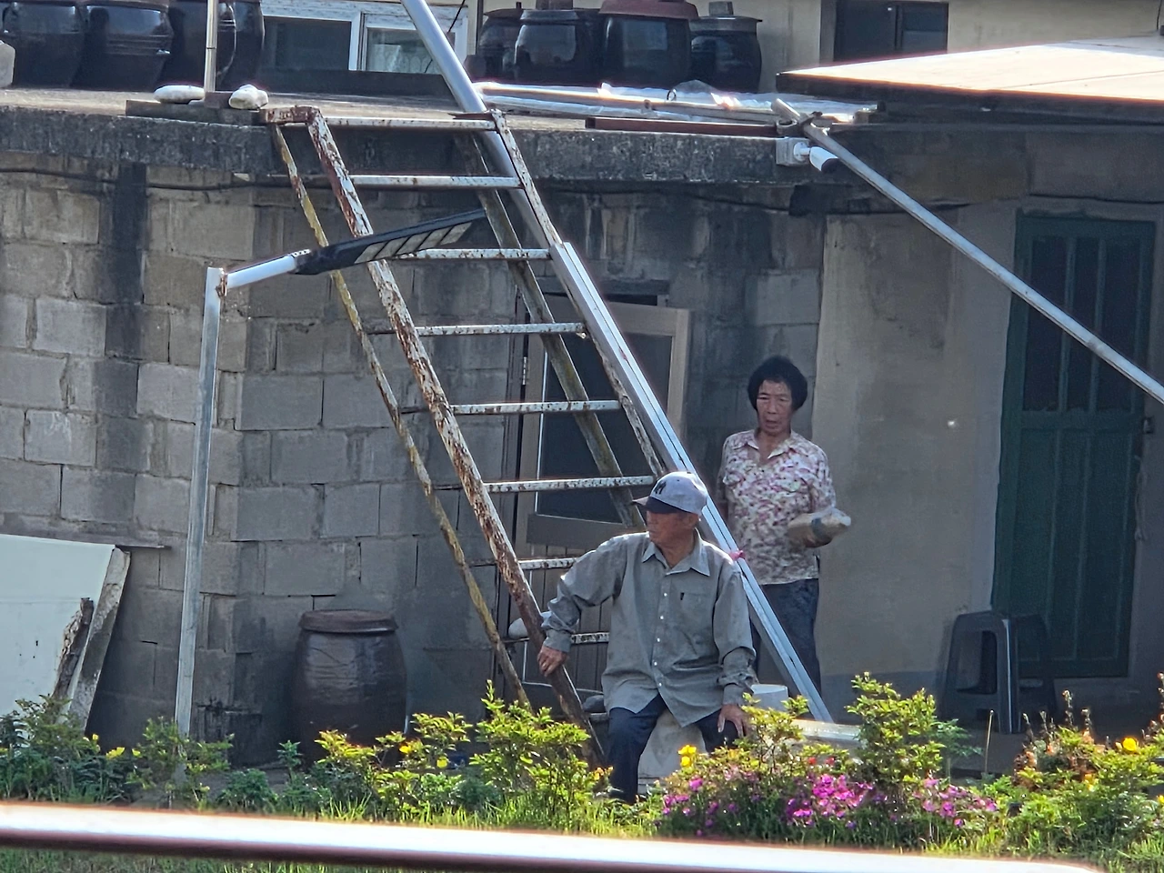 말은 그리 했지만 아직도 밭에 물을 주고 계신 춘봉 씨를 올려다본다.