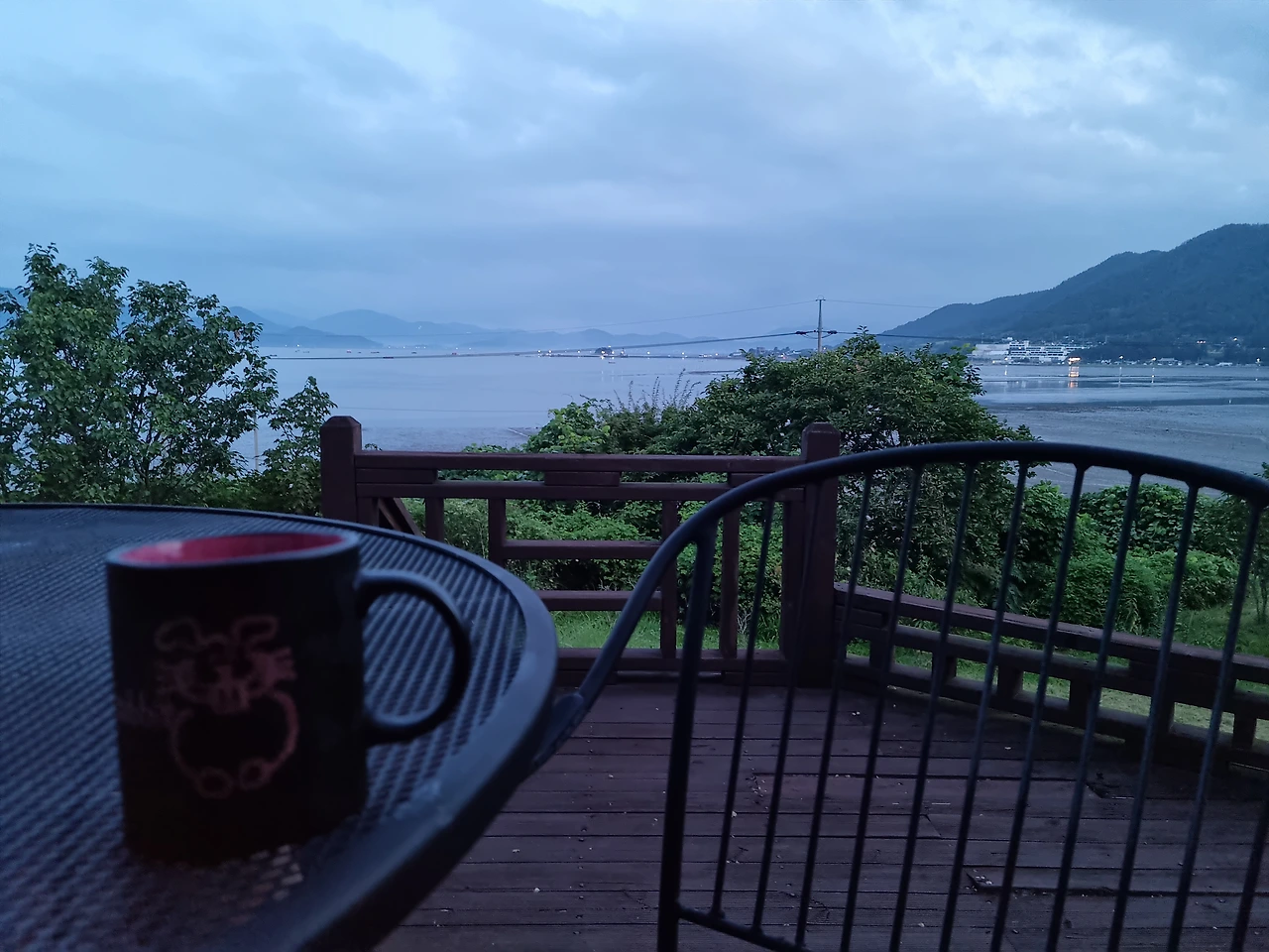 순천 시내를 흐르는 옥천 옆에 있는 카페에서