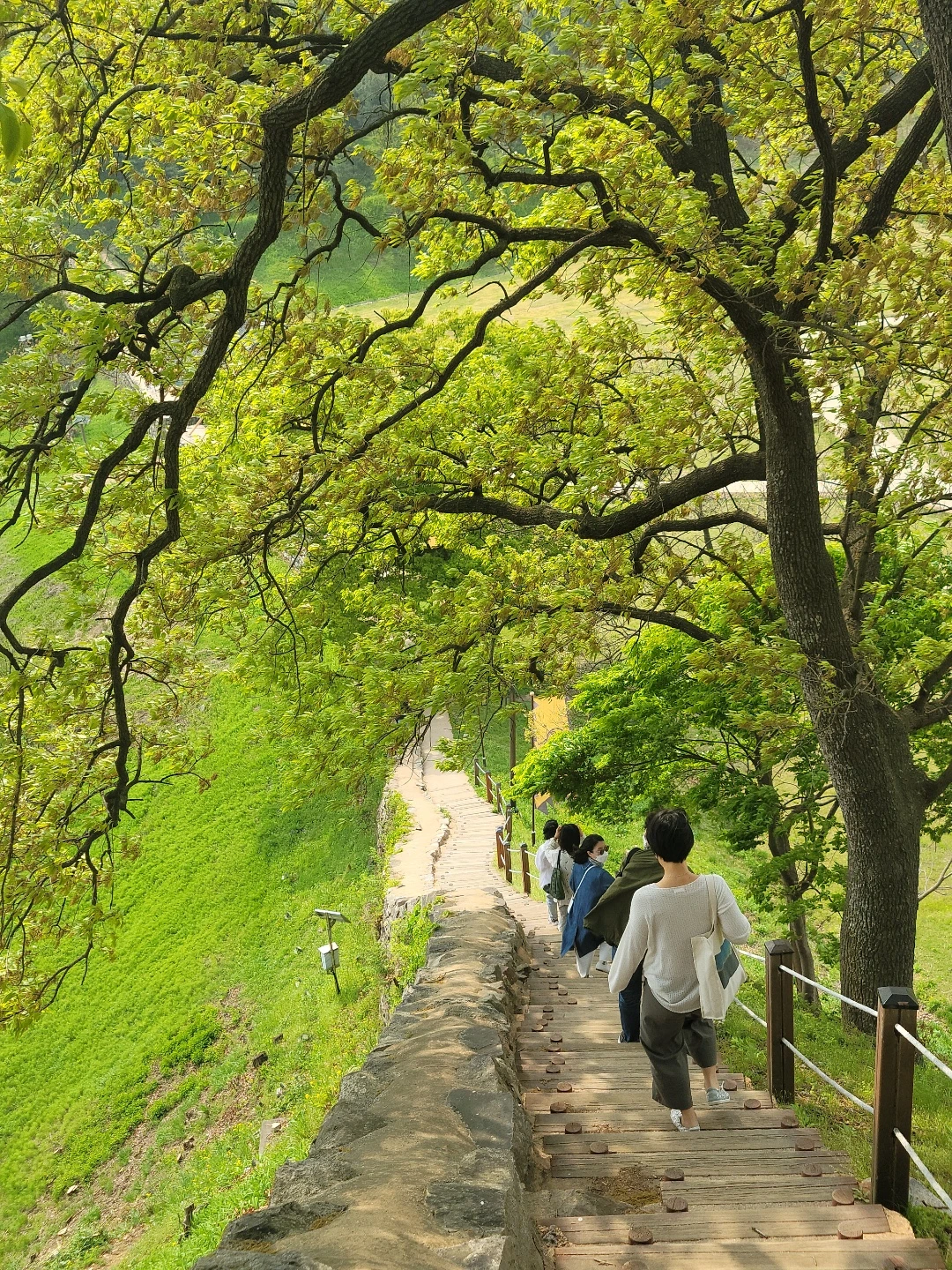 공산성에서의 시간은 오랜 세월 그곳을 지키고 서있는 수많은 나무들과 가까워지는 시간이기도 했다. 그들과 가까워질수록 복잡했던 마음은 안정되고 편안해진다. 하늘에 닿을 듯 높게 솟은 나무를 바라보며 그들이 살아온 긴긴 시간을 더듬어 본다. 햇빛과 바람을 머금었던 시간의 길이만큼 나뭇잎 색깔도 더 깊고 아름다워지는 것일까? 덩치가 큰 고목일수록 가지 끝에 매달린 이파리들이 뿜어내는 연둣빛, 초록빛이 더없이 영롱하고 싱그럽다. 요즘은 2억만 화소의 카메라까지 나왔다는데 몇 억이 넘는 화소의 카메라를 들이댄다 한들 총천연색을 머금은 자연의 빛을 어찌 다 담아낼 수 있을까? 자연의 색은 카메라 렌즈가 아닌 두 눈으로 담아 마음으로 느끼는 것이라지만오감을 다해 한껏 가슴에 담아 느끼고 사진으로 오래도록 남겨두고 싶다.