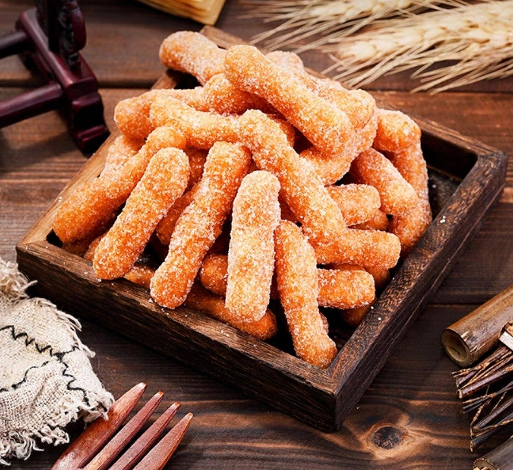 식품점에 가서 엄마가 자주 사오는 “고양이똥 과자”도 너무 맛있었다. 밀가루를 기름에 튀긴 후 하얀 분말가루(단 맛인데 뭔지 모르겠음) 를 입힌 과자었다. 이건 최근에 타우바우에서 江米条이라는 이름으로 팔리는걸 발견했다. 지금 다시 먹으라면 기름 냄새에 과량의 설탕으로 고칼로리기때문에 맛있어도 많이 못 먹을 같다.