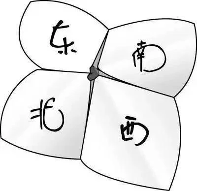 동서남북풍으로 그날 점괘 보는 게임도 있었다. 종이를 접어 네칸을 만들고, 각각 동서남북을 쓴다. 그리고 안쪽에는 원하는 결과들을 쓴다. 상대방이 “서쪽 두번” “남쪽 네번” 이런 식으로 요구를 제출하면 점 보는 사람이 요구대로 움직인다음 멈춰섰을 때 안쪽에 쓴 글을 읽으면 자기가 원하는 결과이다.