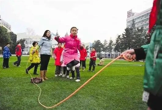 수업시간 사이 10분씩 쉬는 시간이 있다. 그 짧은 시간에도 운동장에 나와서 신나게 게임을 놀고 했는데 그 중 하나가 줄뛰기었다.두 사람이 줄을 흔들고 다른 사람들은 한쪽에서 동요를 부르면서 뛰어 들어간다. 동요는 중국어, 한국어 두가지 버전 다 불렀었다.摇一摇二摇三上까지 부르면 줄에 뛰어들어가야 했다. 一二转大圈 하면 줄뛰기를 뛰면서 한바퀴 돌아야 했고 三四腿劈开하면 노래에 맞추어 다리를 벌려야 했으며 五六手点地하면 손으로 땅을 한번 닿아야 했다. 그 뒤에는 가사가 생각나지 않는데 한명이 더 들어가서 악수도 하고 동요에서 请出去까지 부르면 줄에서 나갔어야 했다.한국말 버전도 있었다. “손님이 들어오세요. 안녕하세요. … 반갑습니다…” 일부만 생각나는데 암튼 노래 내용에 따라 동작을 하면서 단체로 하는 놀이었는데 쉬는 시간이 너무 짧아 항상 아쉬운 마음을 품고 교실로 향했던 기억이 난다.