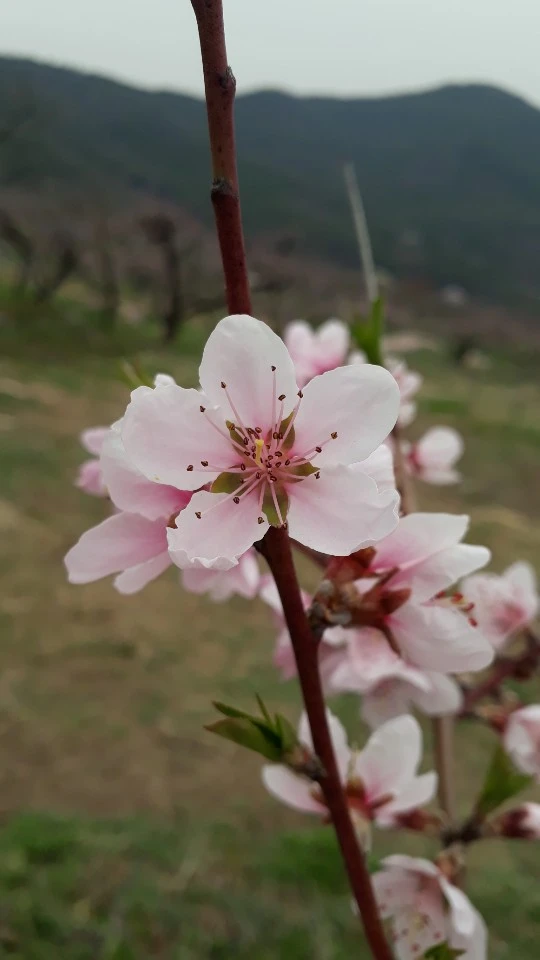 아빠의 마음처럼 부드러운 새싹이 돋은 농장의 복숭아꽃