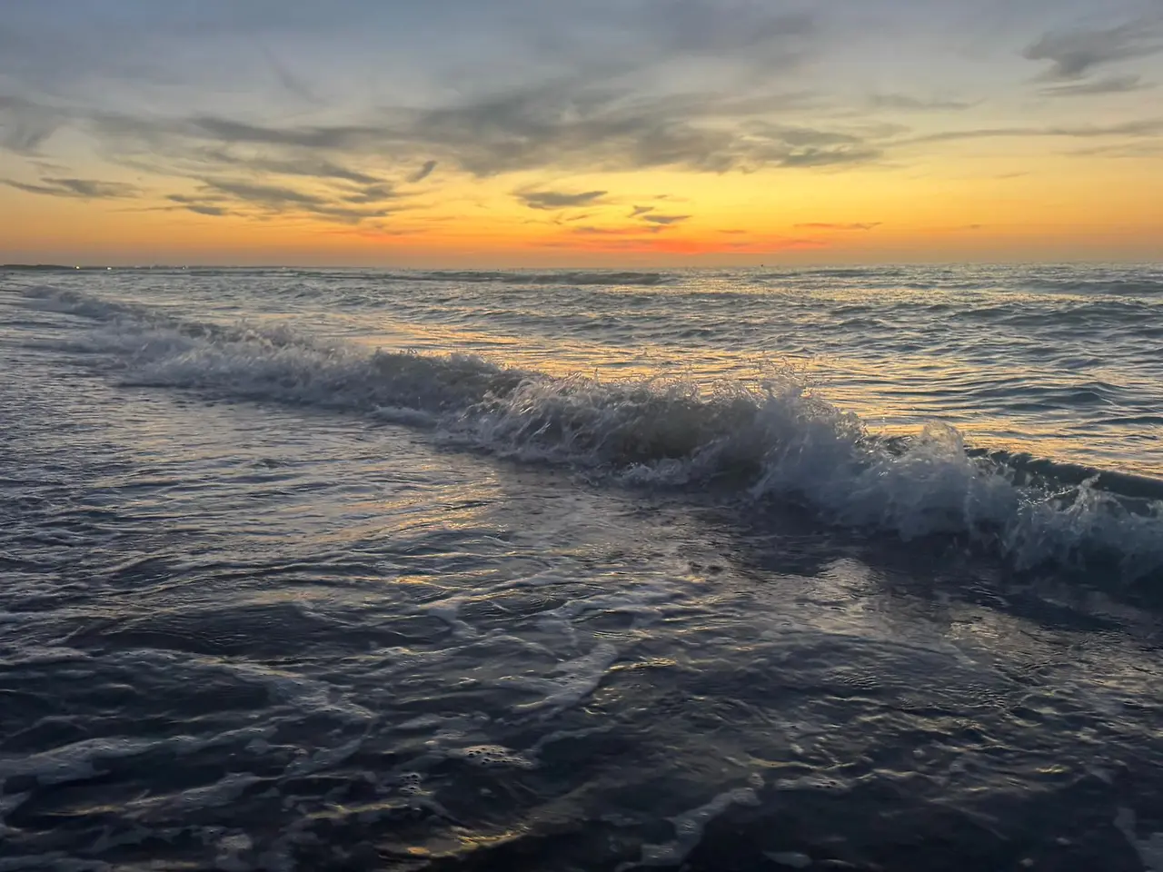 프랑스 노르망디의 카부르(Cabourg) 해변의 파도 (2024년 8월 4일 저녁 일몰을 바라보며)