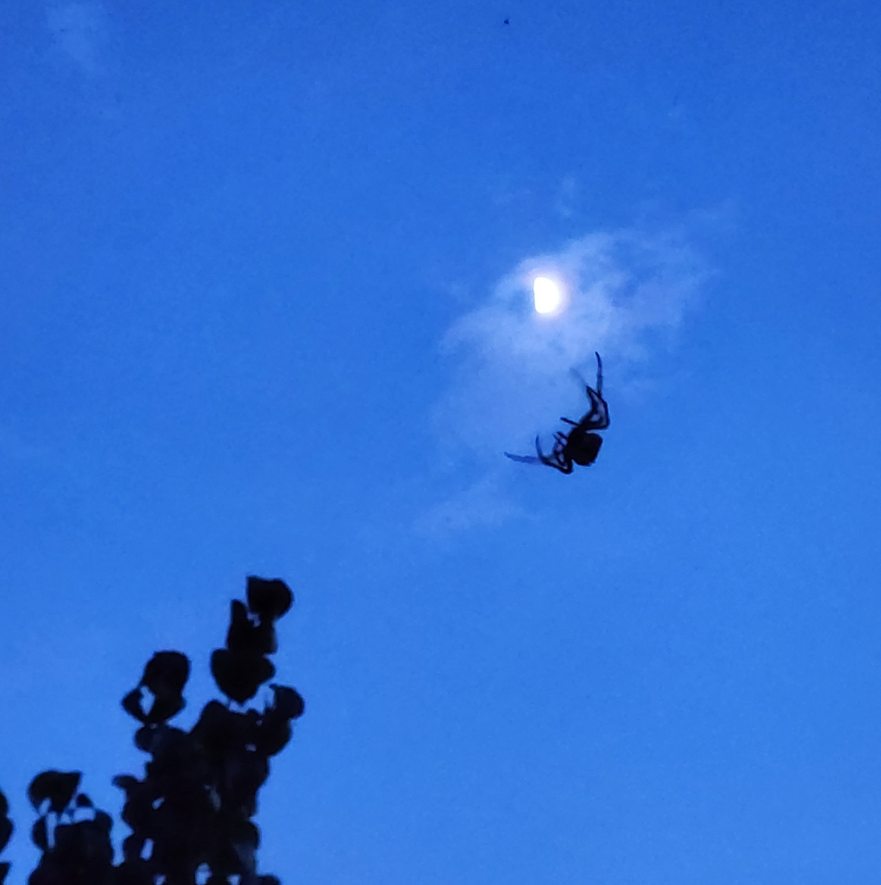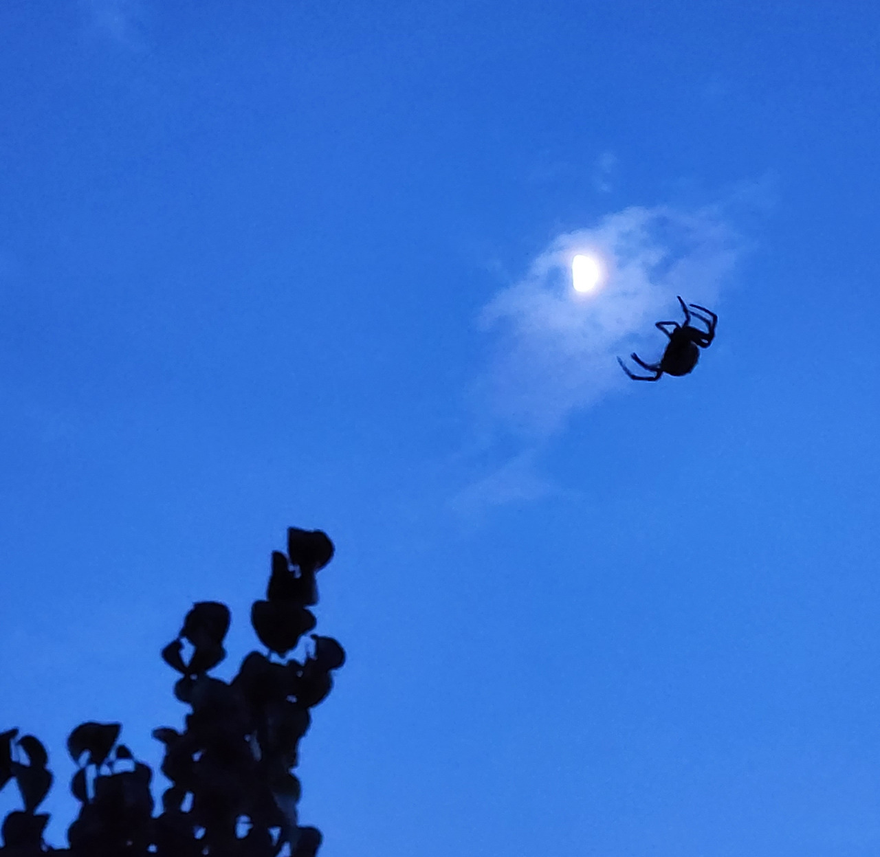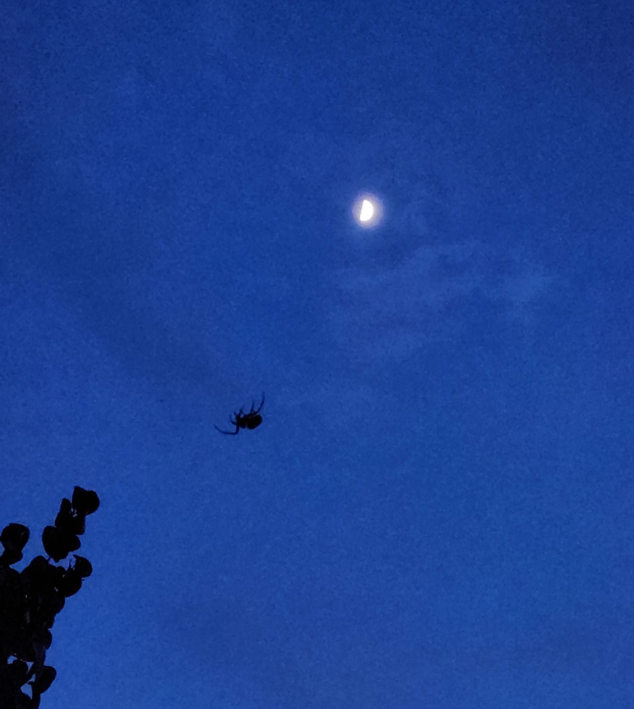 모두가 잘 먹고 잘 살고 싶은 꿈으로 같은 곳을 바라보며 살아가고 있습니다. 분명 저를 포함한 대다수의 사람들의 꿈이 비슷하겠지요. 이때쯤이면, 결혼을 하고 내 집장만하고, 또 이 나이쯤엔 이 정도 차는 타줘야 하고. 우리의 아이들도 이런 모습으로 또 살아가겠지요? 해 질 무렵 마당에서 거미가 열심히 위로 움직이는 모습을 보며 생각했어요. 편히 거미줄 쳐놓고 먹이감을 기다리지 왜 저리 움직일까? 한참을 봤는데 같은 움직임을 반복합니다. (저녁노을을 보러 나갔다가 거미를 이리 쳐다보는사이에 훌쩍 어둠이 찾아왔습니다.) 한참을 반복해서 허공에서 허우적 거리는 이 거미를 보며 왠지 모르게 기특하단 생각이 들었습니다. 응원하고 싶단 생각이 들었습니다. 푸른 밤 달을 만나러 가는 중이 아닐까 라는 생각이 들어 열심히 카메라 버튼을 눌렀네요. 마지막 달을 품은 거미의 모습이 저에게는 해피엔딩으로 보여요. ㅎㅎ(똑같은 곳을 바라보며 경쟁하고 1등, 2등, 3등을 가르기보다 자신만의 꿈을 꾸며 각각의 분야에서 모두가 1등이 될 수 있는 그런 날이 왔으면 좋겠다는 생각은 덤입니다.)