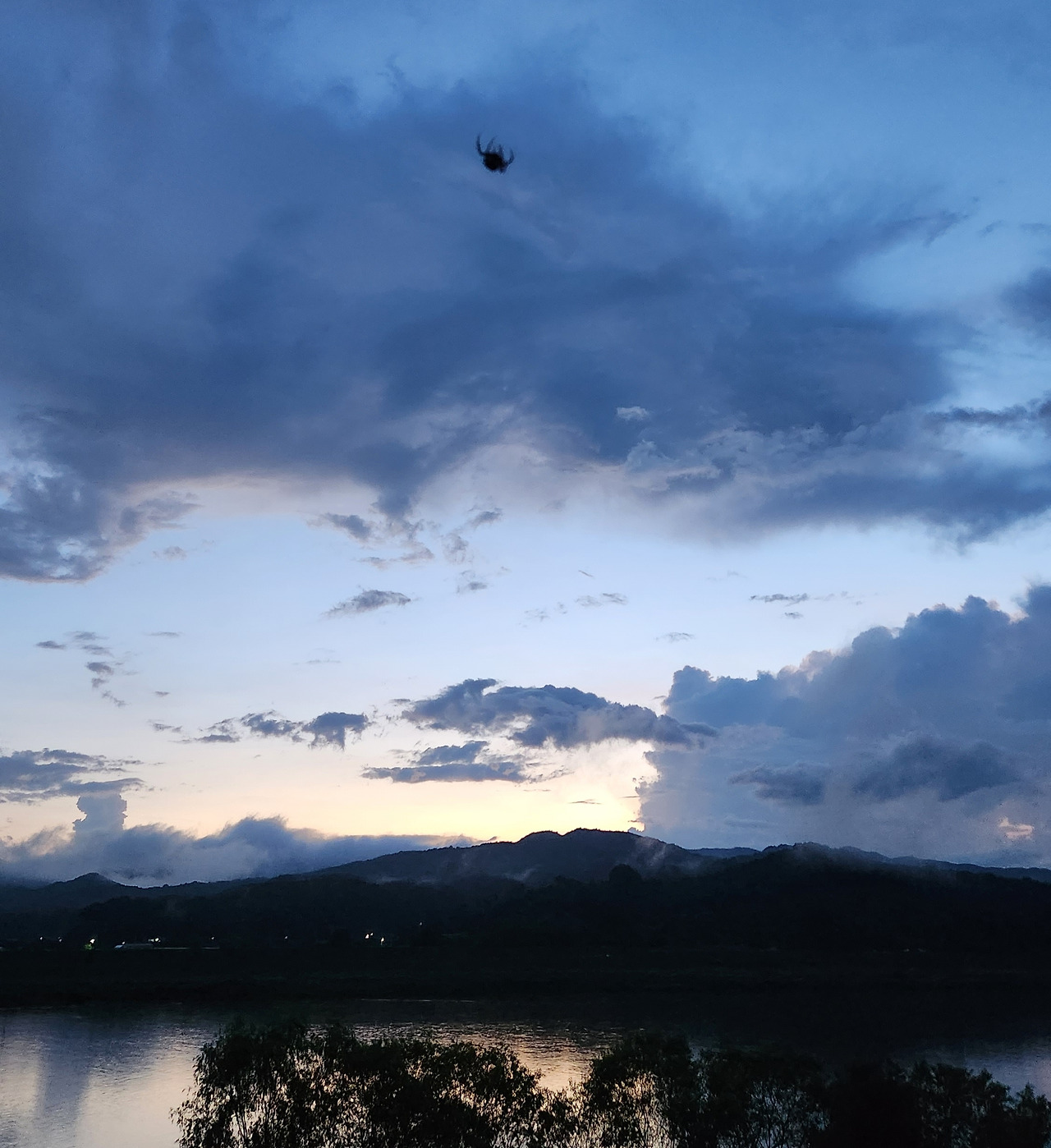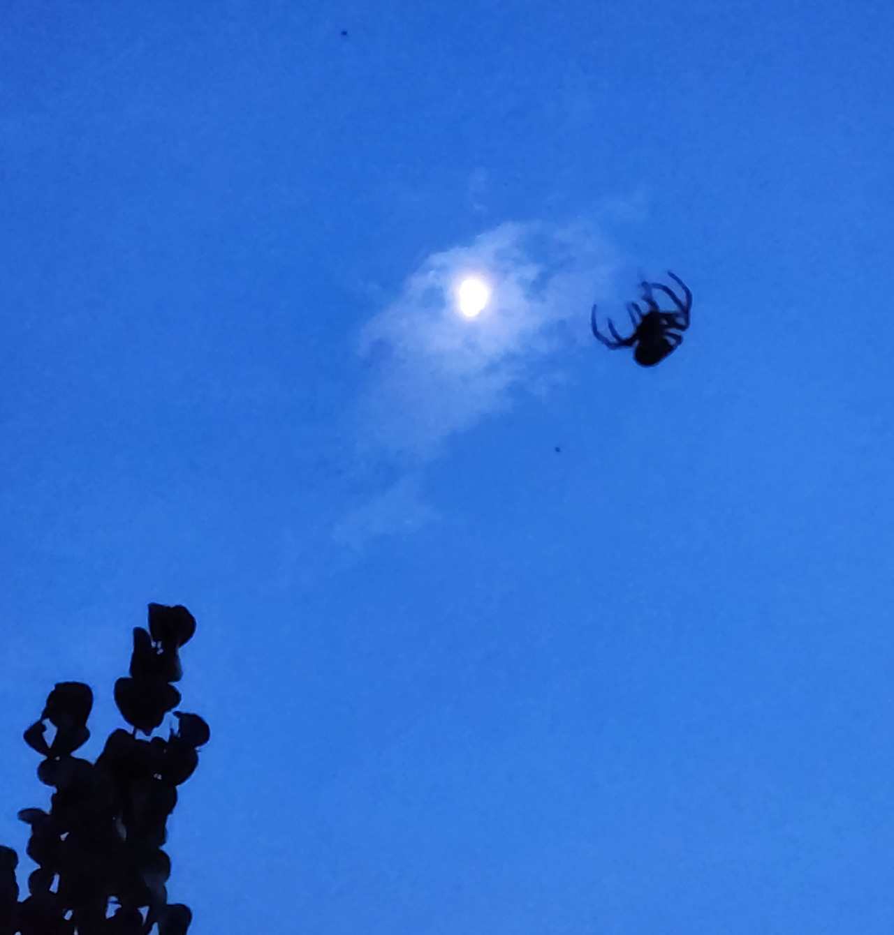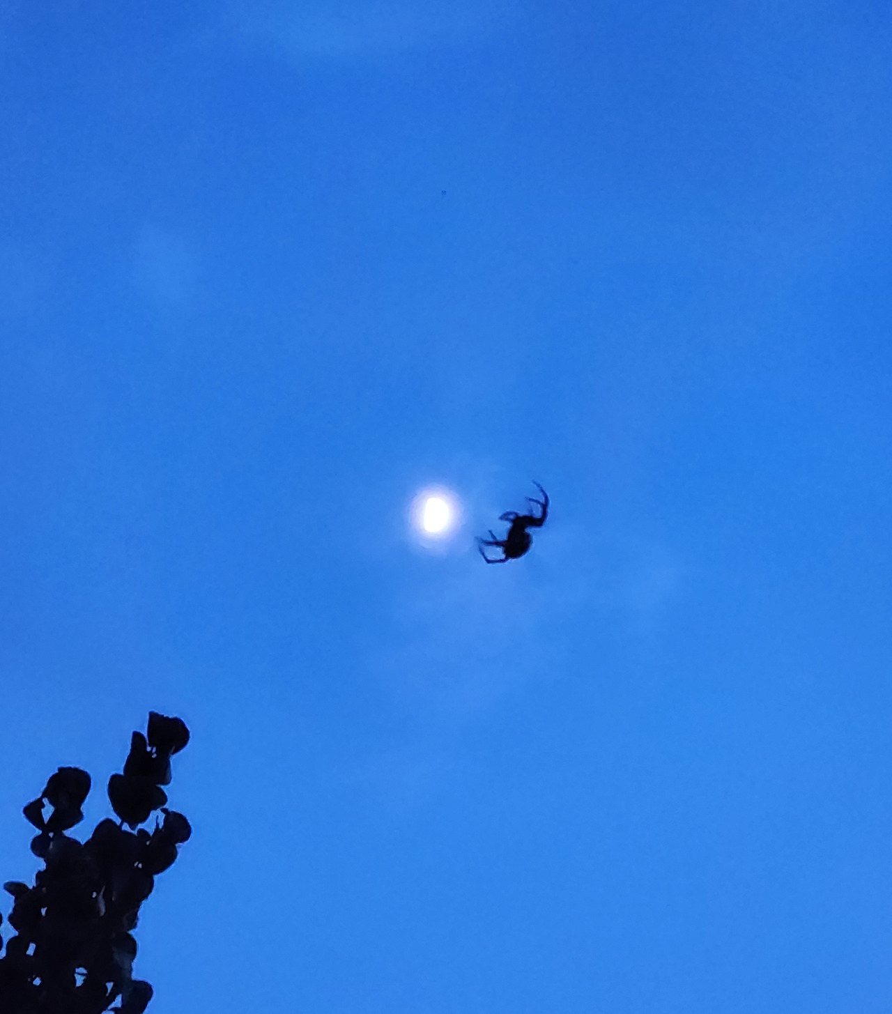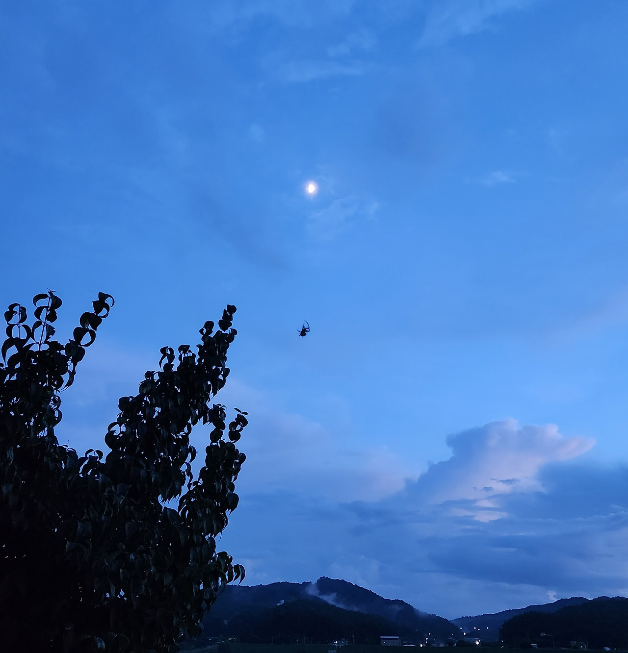 모두가 잘 먹고 잘 살고 싶은 꿈으로 같은 곳을 바라보며 살아가고 있습니다. 분명 저를 포함한 대다수의 사람들의 꿈이 비슷하겠지요. 이때쯤이면, 결혼을 하고 내 집장만하고, 또 이 나이쯤엔 이 정도 차는 타줘야 하고. 우리의 아이들도 이런 모습으로 또 살아가겠지요? 해 질 무렵 마당에서 거미가 열심히 위로 움직이는 모습을 보며 생각했어요. 편히 거미줄 쳐놓고 먹이감을 기다리지 왜 저리 움직일까? 한참을 봤는데 같은 움직임을 반복합니다. (저녁노을을 보러 나갔다가 거미를 이리 쳐다보는사이에 훌쩍 어둠이 찾아왔습니다.) 한참을 반복해서 허공에서 허우적 거리는 이 거미를 보며 왠지 모르게 기특하단 생각이 들었습니다. 응원하고 싶단 생각이 들었습니다. 푸른 밤 달을 만나러 가는 중이 아닐까 라는 생각이 들어 열심히 카메라 버튼을 눌렀네요. 마지막 달을 품은 거미의 모습이 저에게는 해피엔딩으로 보여요. ㅎㅎ(똑같은 곳을 바라보며 경쟁하고 1등, 2등, 3등을 가르기보다 자신만의 꿈을 꾸며 각각의 분야에서 모두가 1등이 될 수 있는 그런 날이 왔으면 좋겠다는 생각은 덤입니다.)