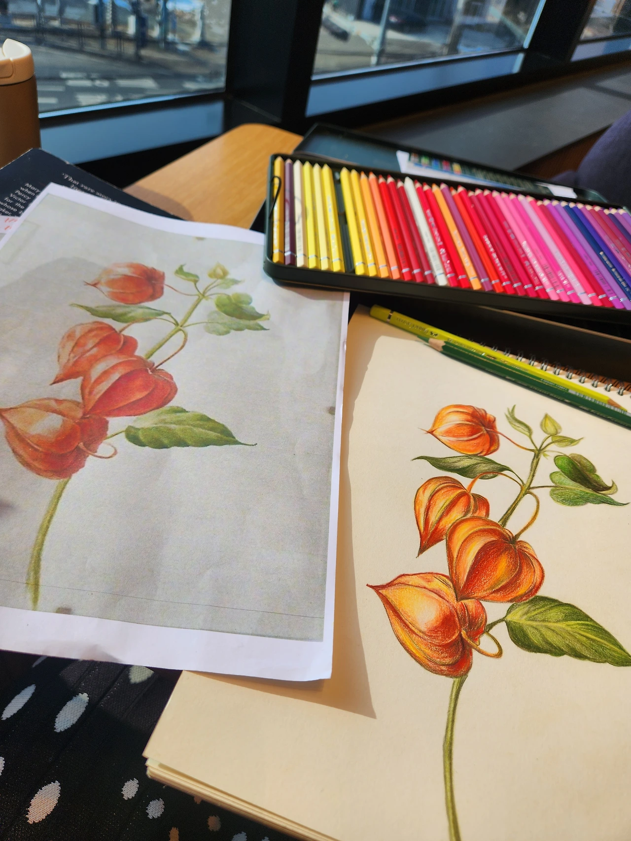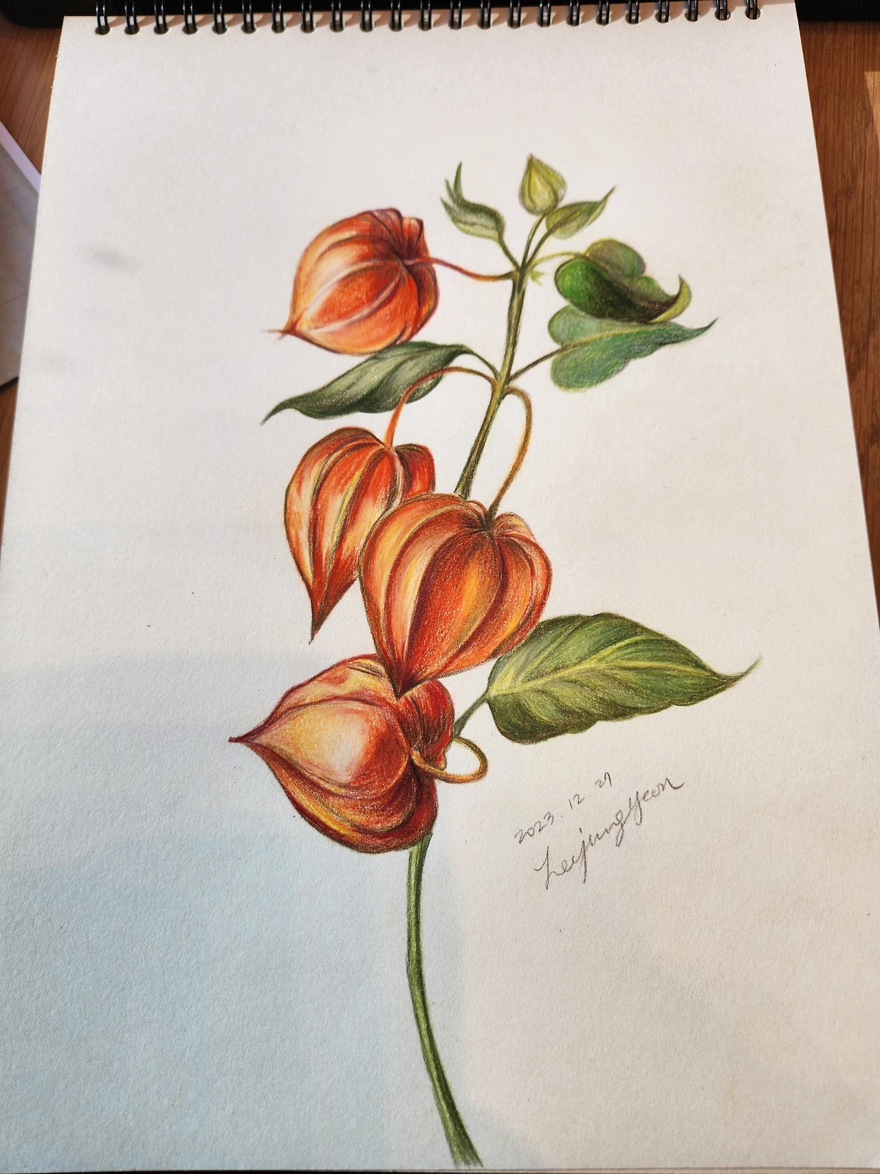 사진으로만 담아보던 식물들을 직접 그려보고 있어요. 보태니컬아트 초보입니다. 갈길이 멀어요. 쉽지 않네요. ㅎㅎ 한창 싱싱한 꽈리의 모습이라 함께 담아봅니다.